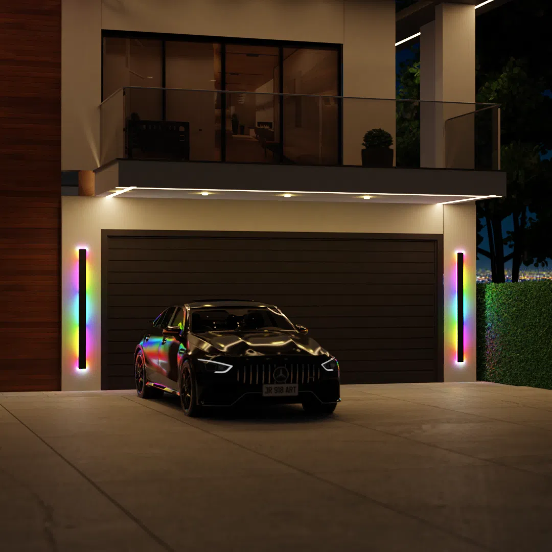 Illuminate your outdoor space with splashes of color or peaceful white with our versatile. waterproof. RGB Modern Long LED Outdoor Wall Light. Offering RGB color combinations and three regular lighting modes: warm. white. dimmable for optional choose. this porch minimalist wall light fixture promises to completely transform your evenings. making your gatherings more festive and your quiet moments more tranquil.