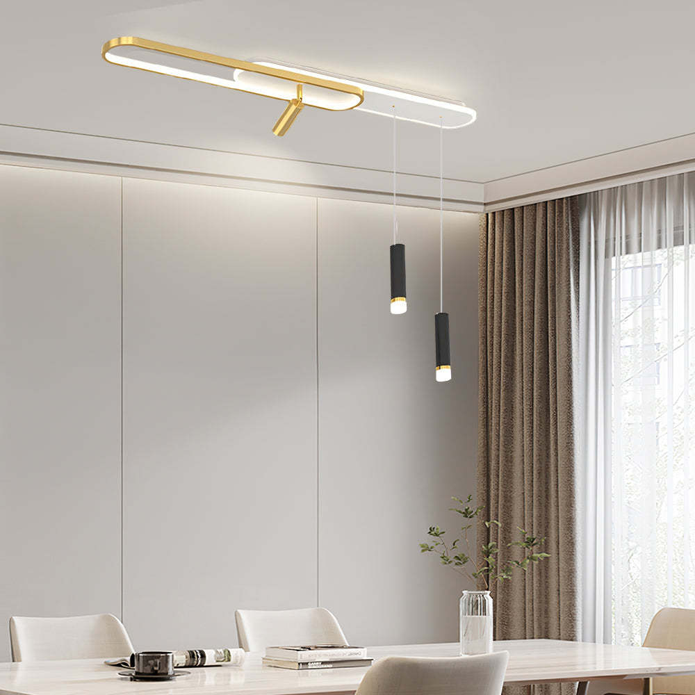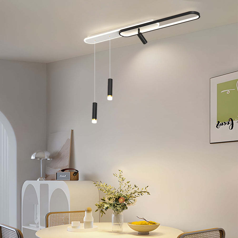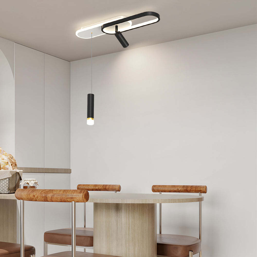 - This ceiling light is composed of two rounded rectangular lamp bodies. It is also designed with a small spotlight and a small hanging light. It is more three-dimensional and more flexible in lighting than other flat ceiling lamps, and this modern design will add more beauty and artistic sense to your house.