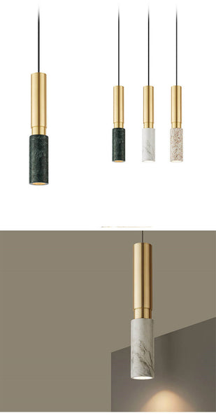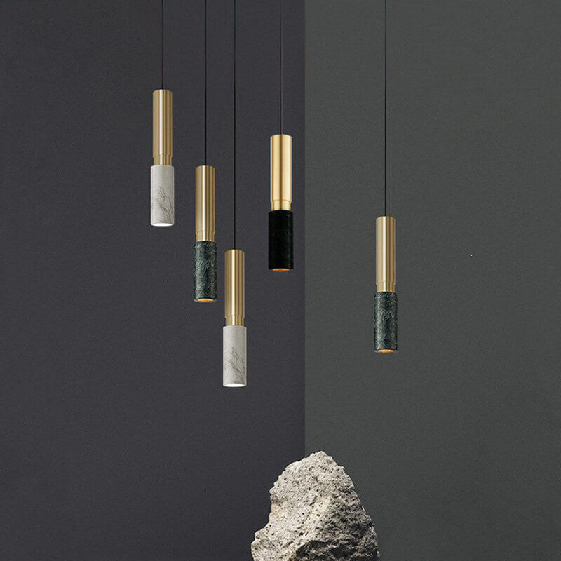 Marble Splicing Metal 1-Light Single Cylinder Pendant Light