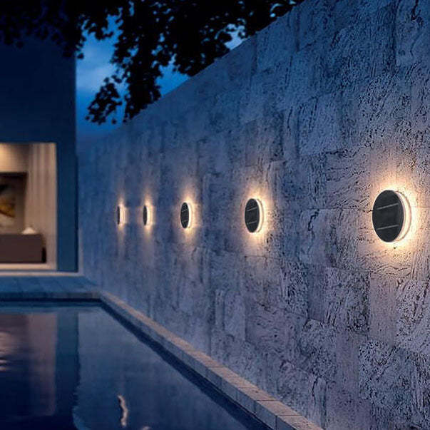 Minimalist Solar Waterproof Round Disc Design LED Outdoor Wall Sconce Lamp