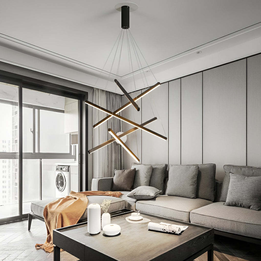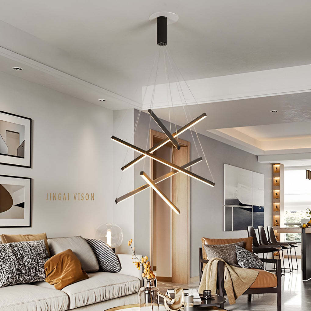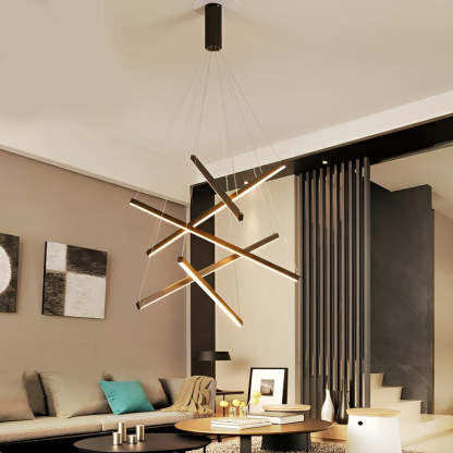 Minimalist Strip Stepless Dimming LED Black Modern Chandelier with Remote