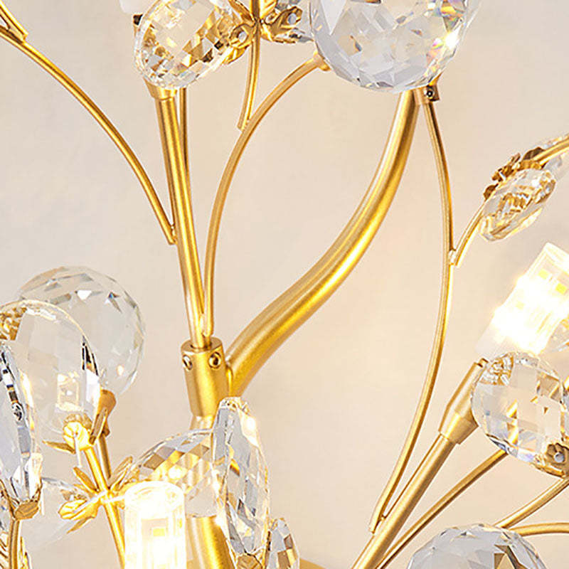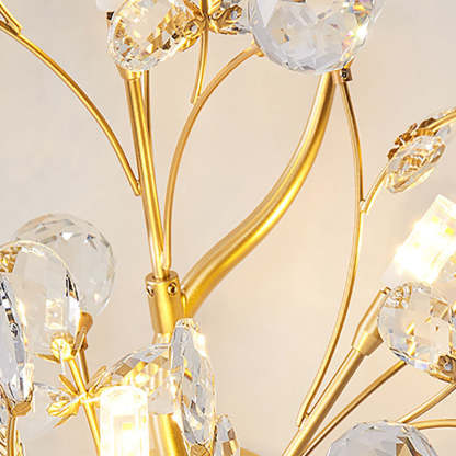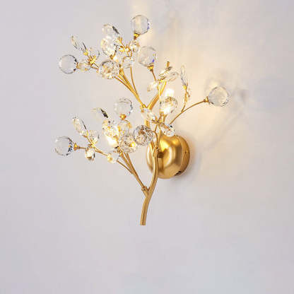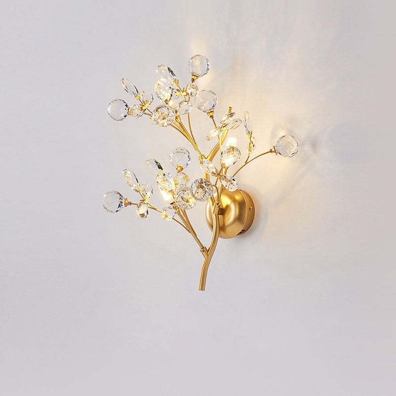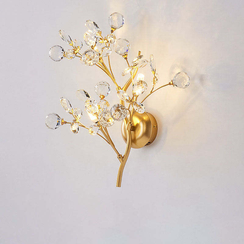 Modern Art Deco Luxury Crystal Floral Branch Iron 3-Light Wall Sconce Lamp For Living Room