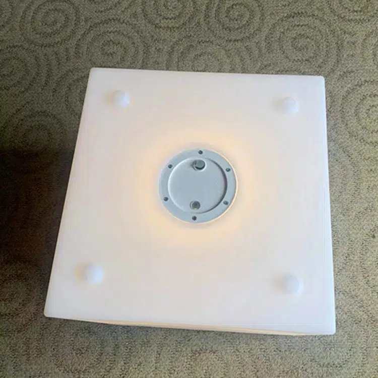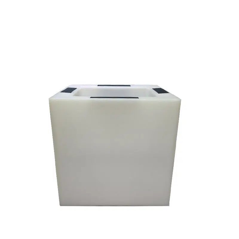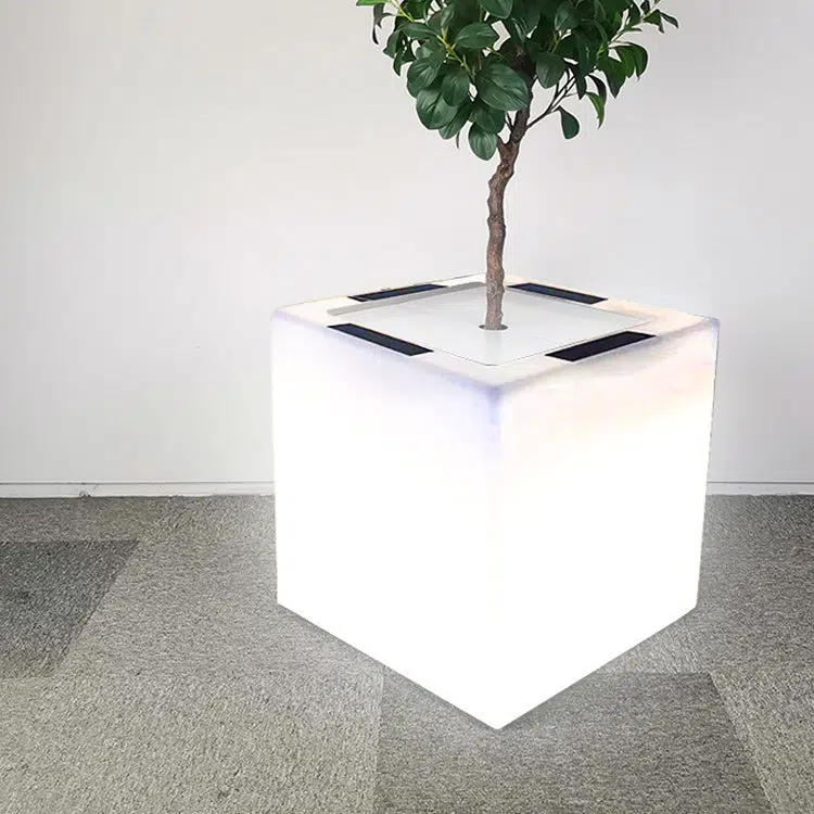 This white square LED planter light is solar or USB rechargeable. waterproof. and doubles as both a decorative outdoor light and functional flower pot. Made of durable PE. it’s perfect for adding ambiance to gardens. patios. or public spaces with modern decorative style.