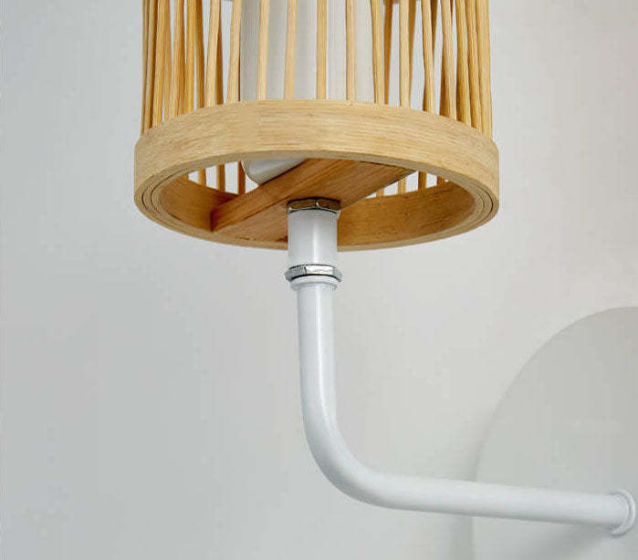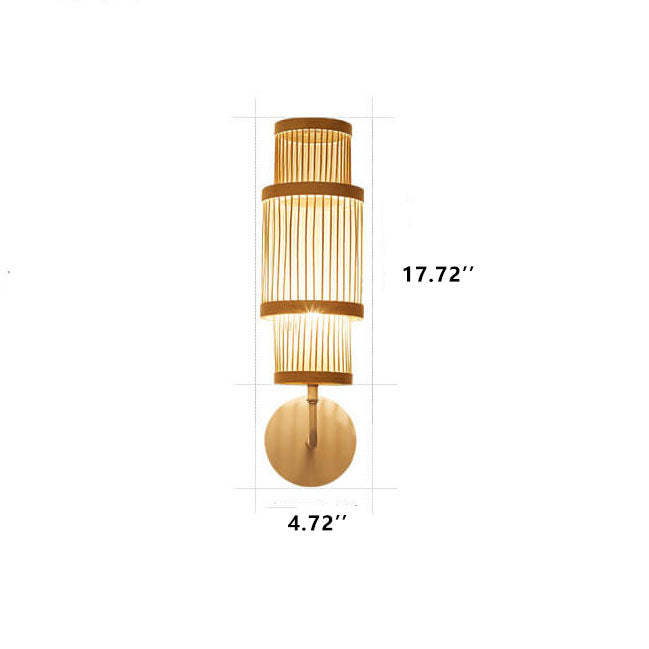 Modern Bamboo Weaving Cylindrical 1-Light Wall Sconce Lamp