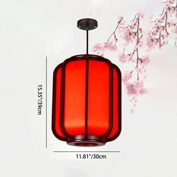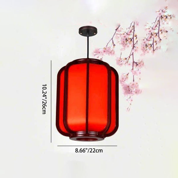 Modern Chinese Faux Sheepskin Wooden Lantern 1-Light Pendant Light