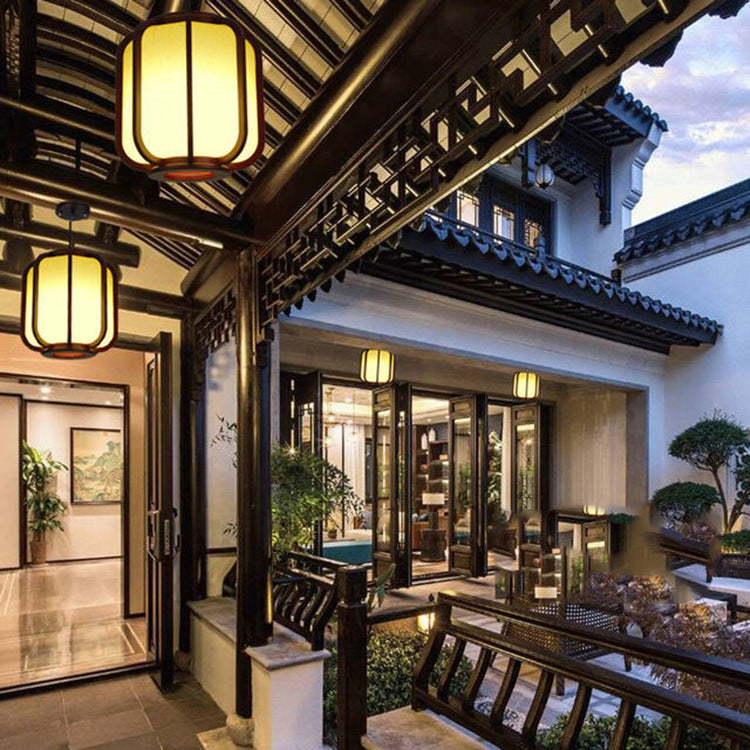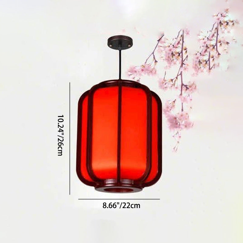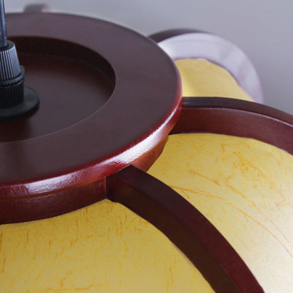 Modern Chinese Faux Sheepskin Wooden Lantern 1-Light Pendant Light