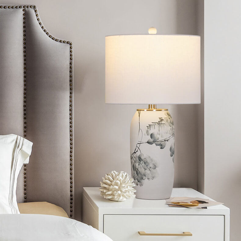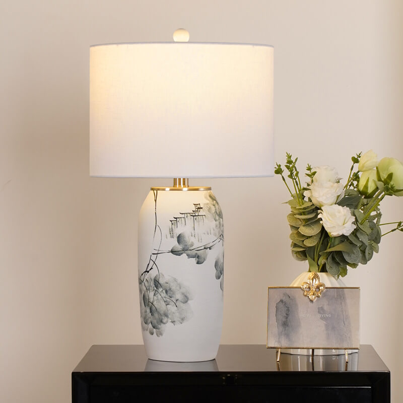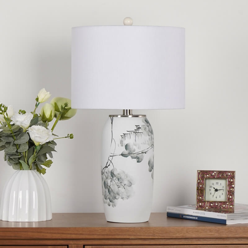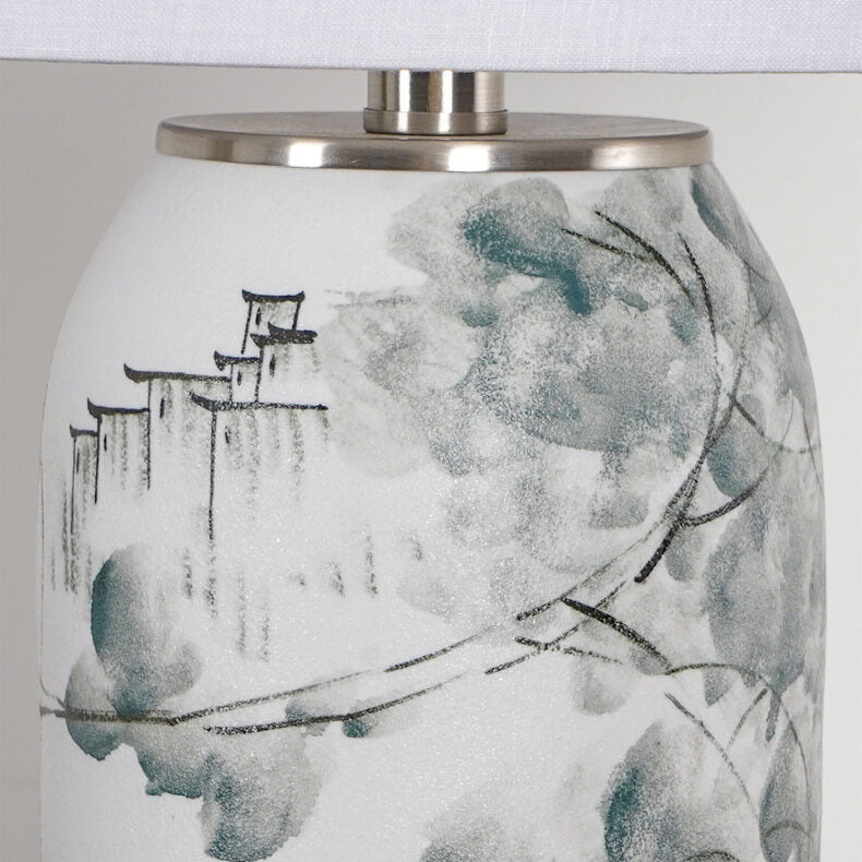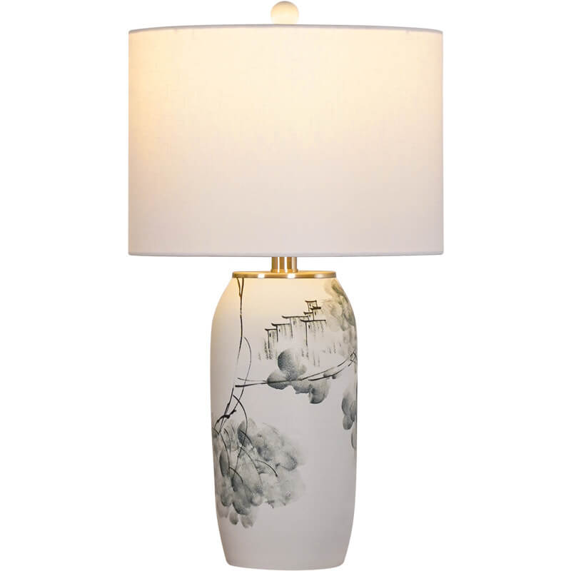 Modern Chinese Ink Painting Ceramic Fabric 1-Light Table Lamp