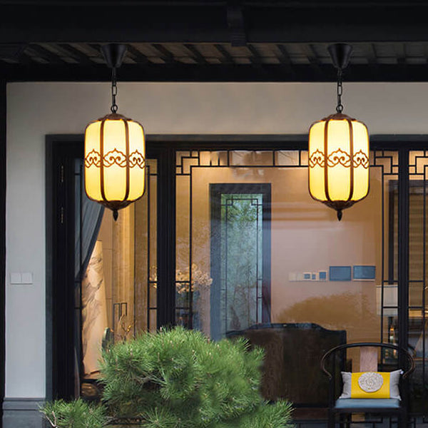 Modern Chinese Marble Lantern Outdoor Waterproof 1-Light Pendant Light