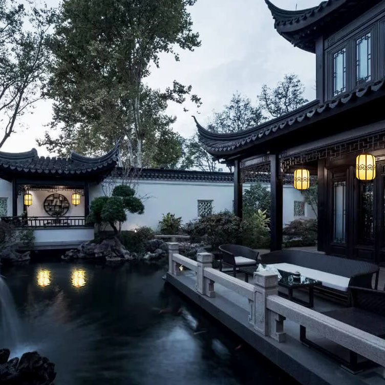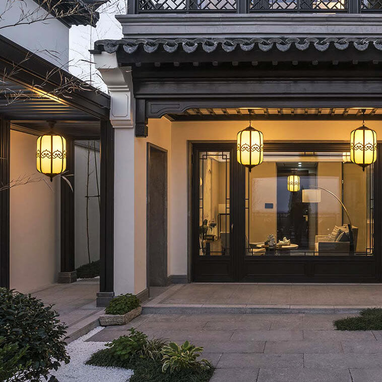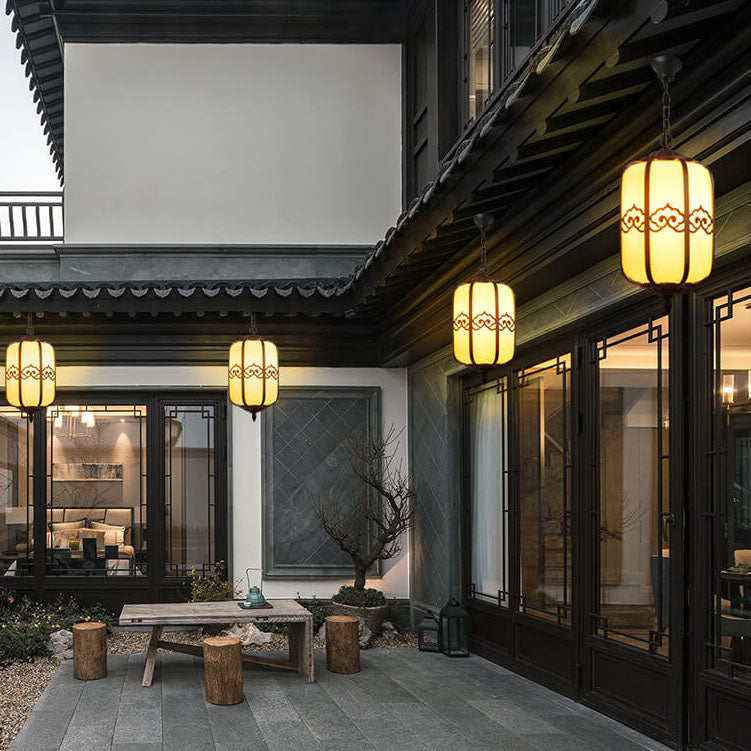 Modern Chinese Marble Lantern Outdoor Waterproof 1-Light Pendant Light