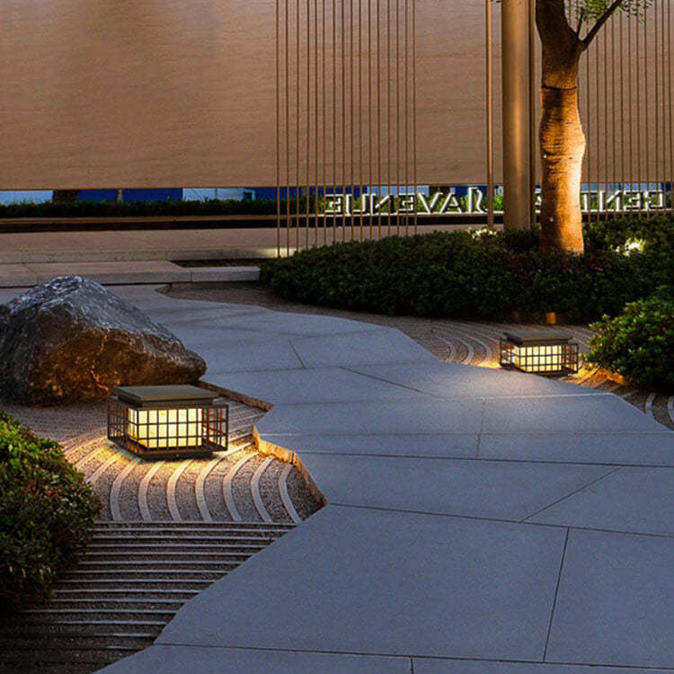 Modern Chinese Square Column Outdoor Waterproof Patio 1-Light Landscape Light
