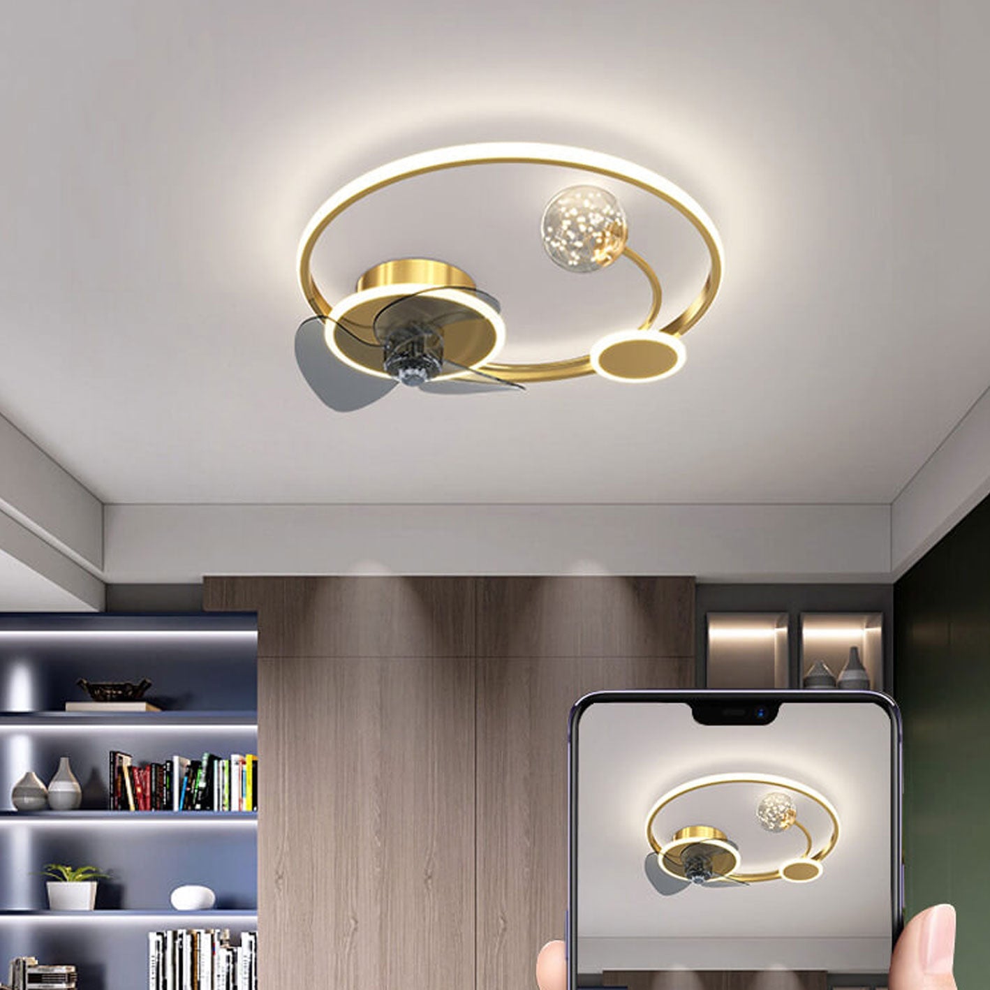Modern Creative Circle Ball Design LED Flush Mount Ceiling Fan Light