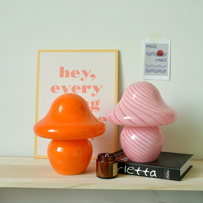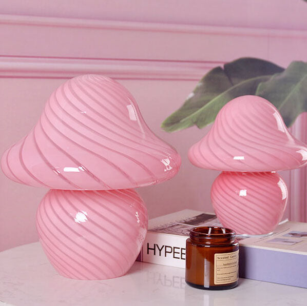 Modern Decorative Mushroom Striped Glass 1-Light Table Lamp