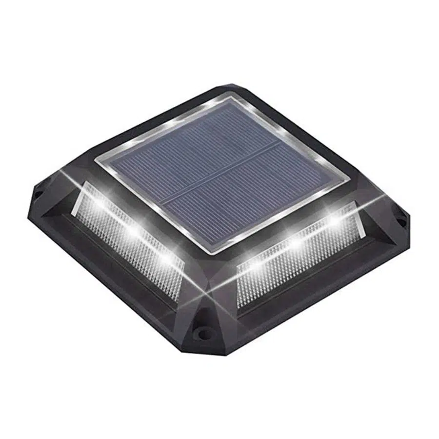 - Transform your outdoor areas with our Heavy-Duty Solar Deck Lights. crafted from die-cast aluminum capable of handling up to 20 tons of pressure. ideal for high-traffic areas. These solar-powered lights are designed with longevity in mind and larger 2.7 in X 2.7 in silicon solar panel for efficient working. featuring UV-resistant powder coating and a clear glass lens that maintains clarity without yellowing.