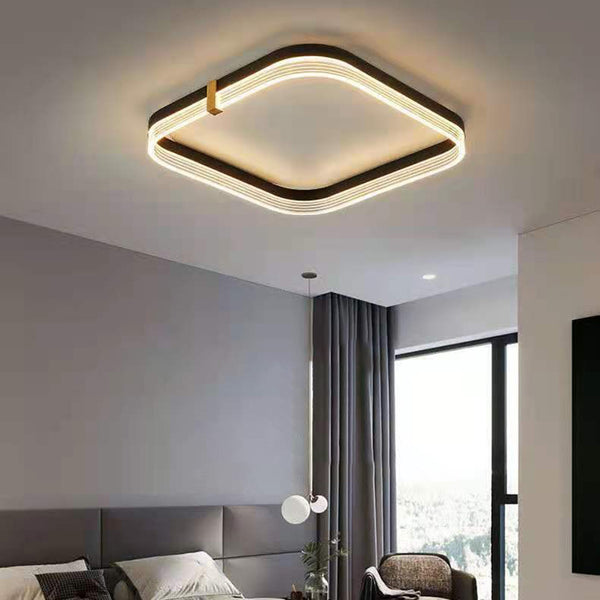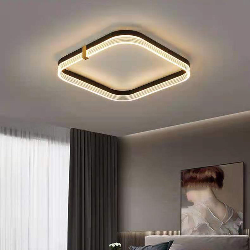 Elevate your space with this modern luxury ceiling light. featuring aluminum and acrylic construction in striking round and square shapes. The integrated LED design offers a soft glow. while gold and black finishes add refined style to bedrooms and living rooms alike.