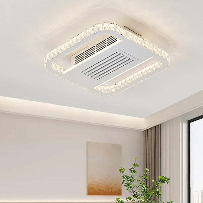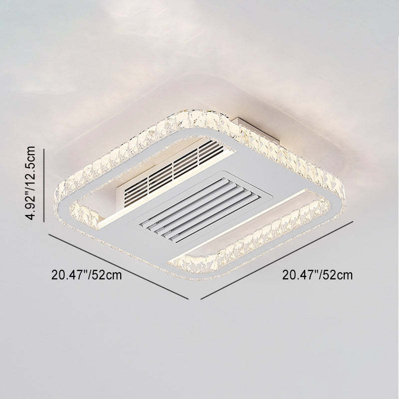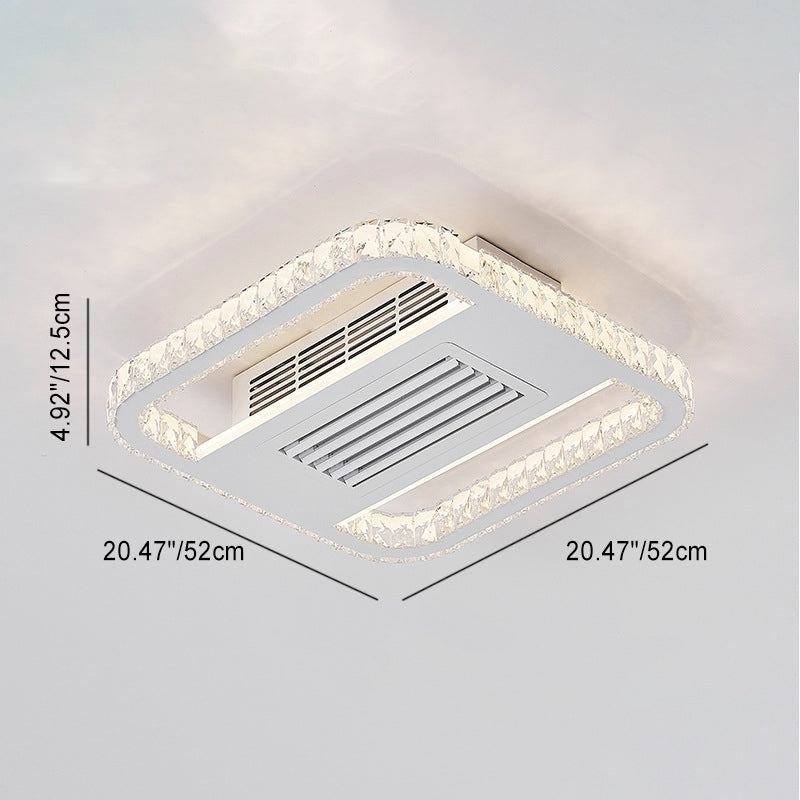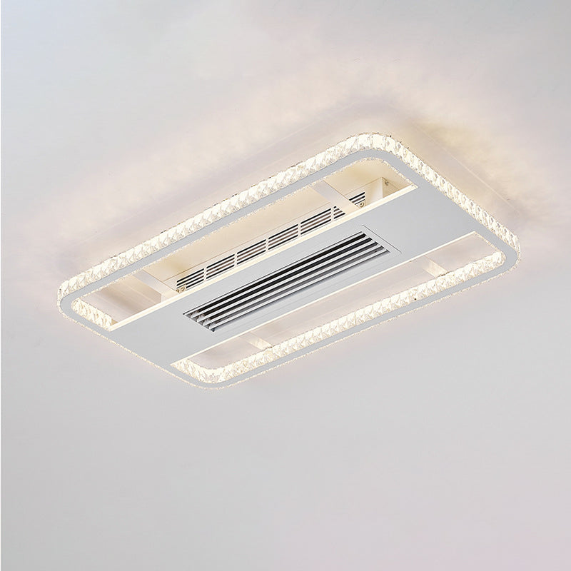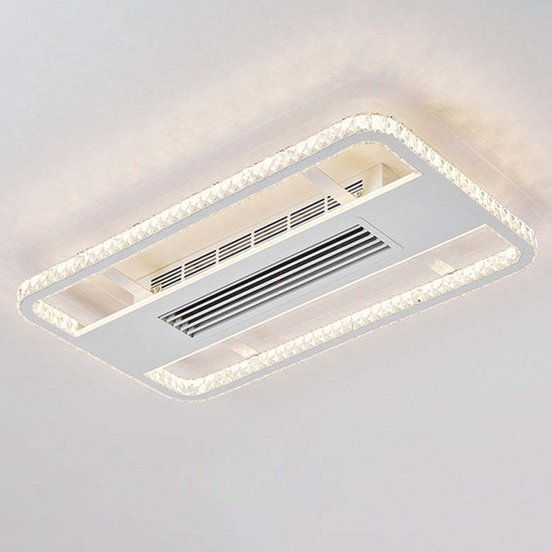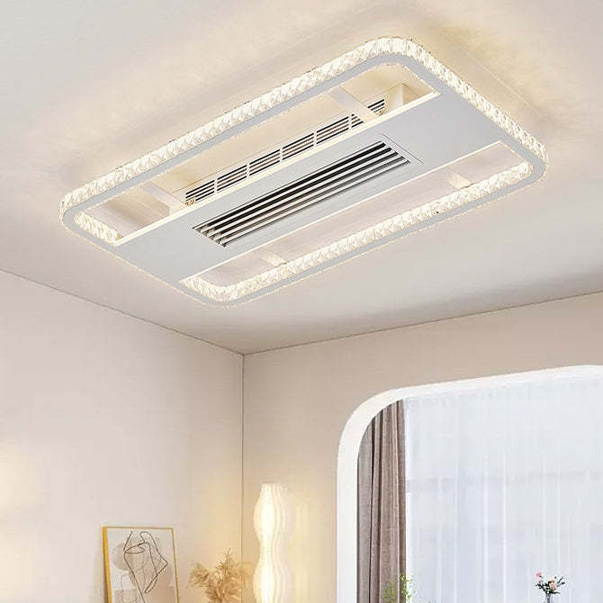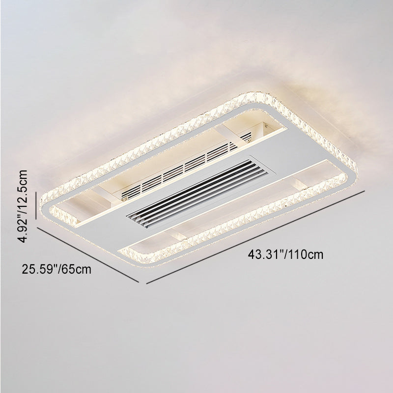 Modern Luxury Aluminum Iron Acrylic Rectangular Square Round LED Semi-Flush Mount Bladeless Ceiling Fan Light For Living Room