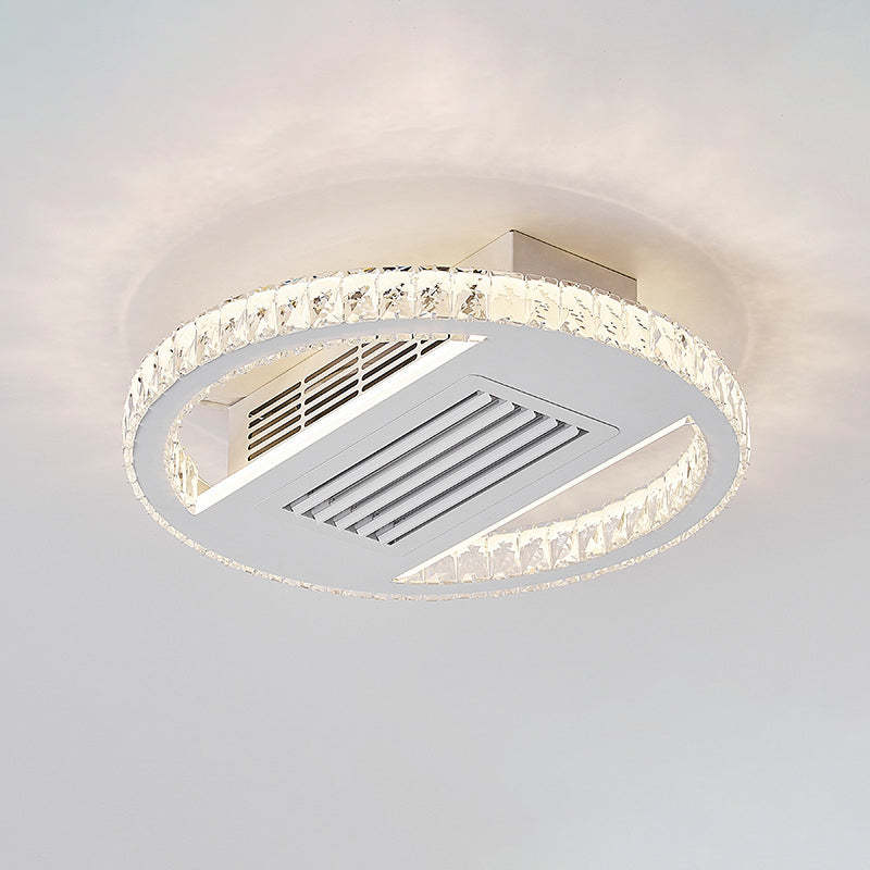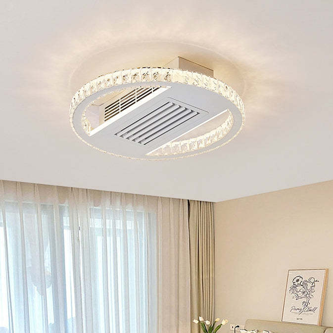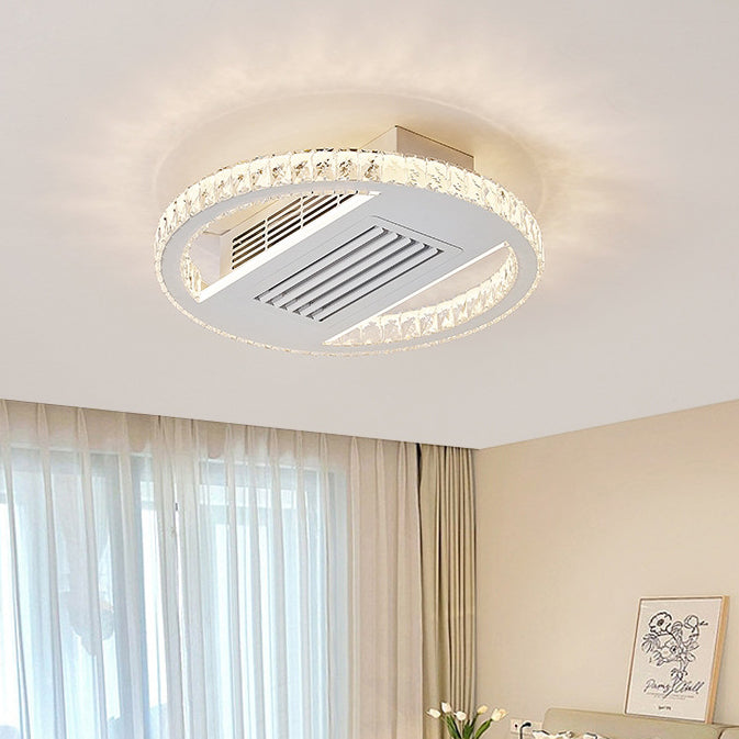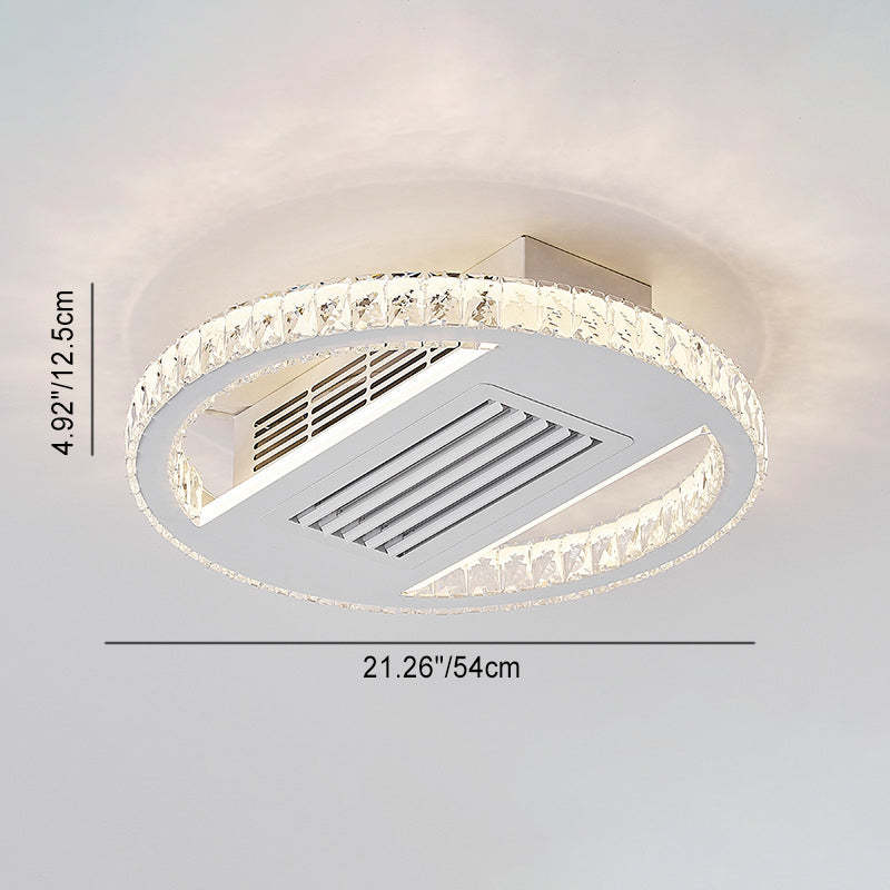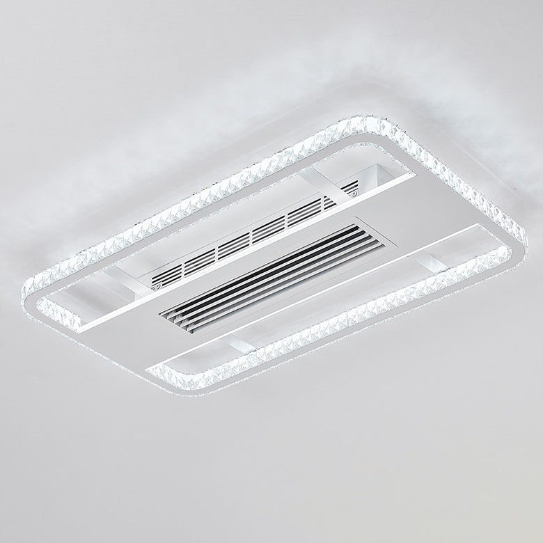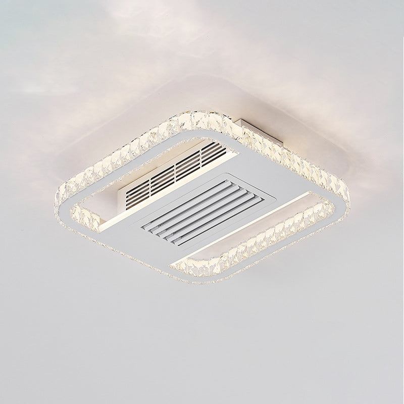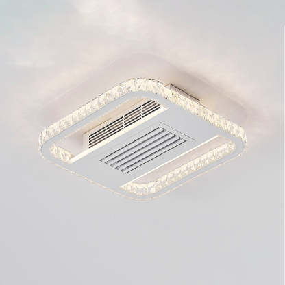 Modern Luxury Aluminum Iron Acrylic Rectangular Square Round LED Semi-Flush Mount Bladeless Ceiling Fan Light For Living Room