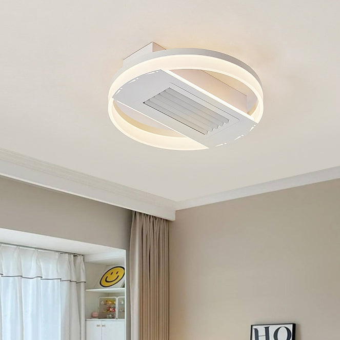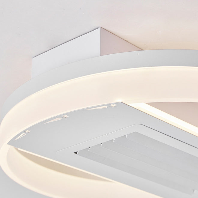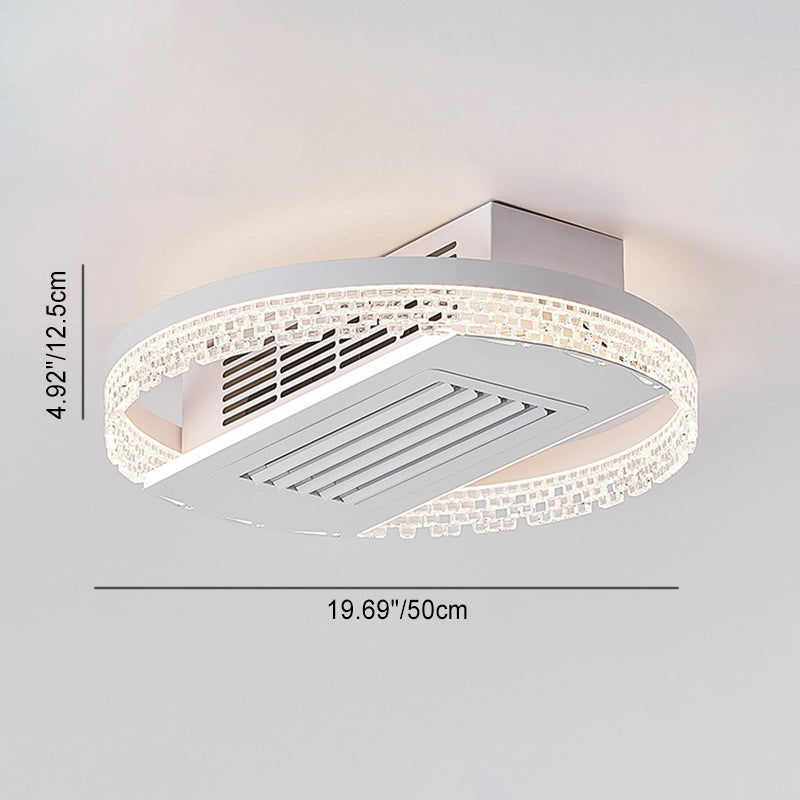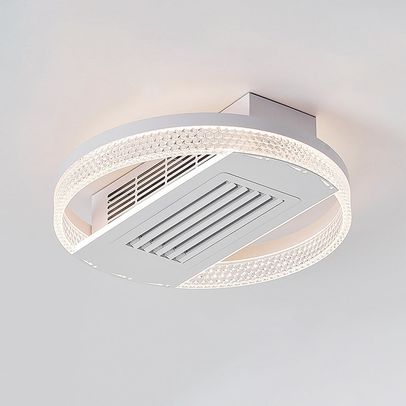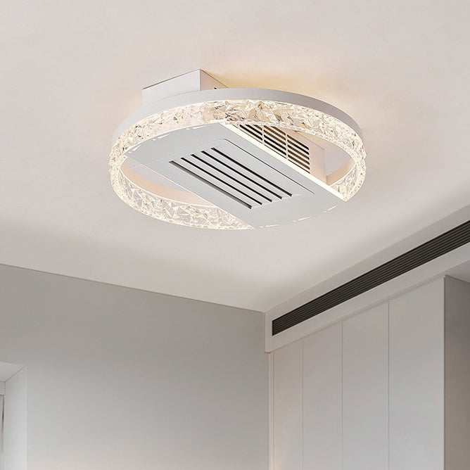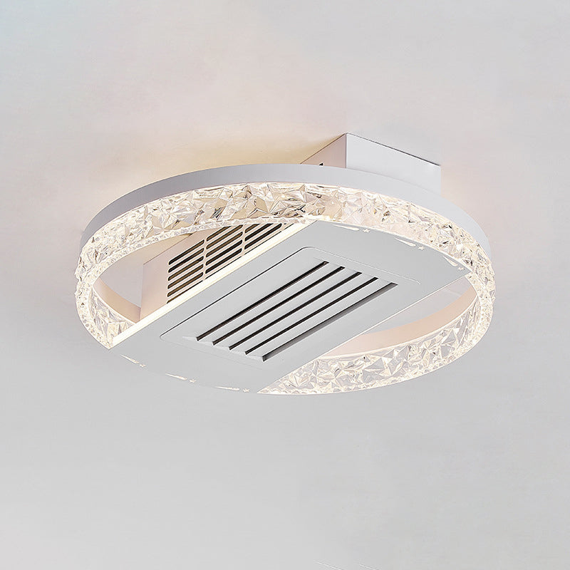 Modern Luxury Aluminum Iron Acrylic Round LED Semi-Flush Mount Leafless Ceiling Fan Light For Bedroom