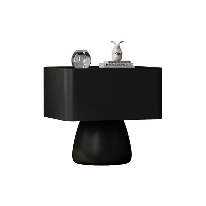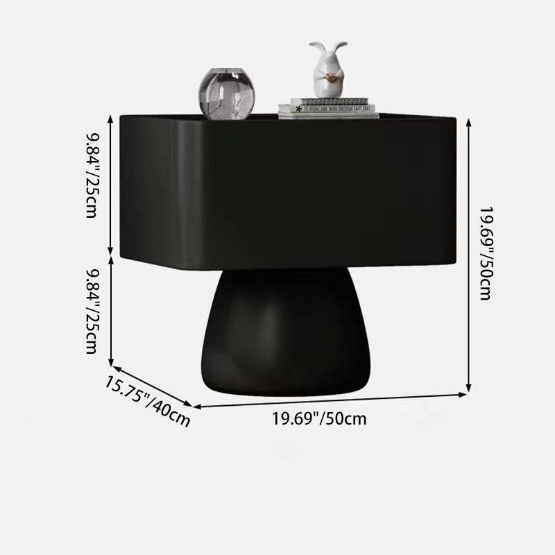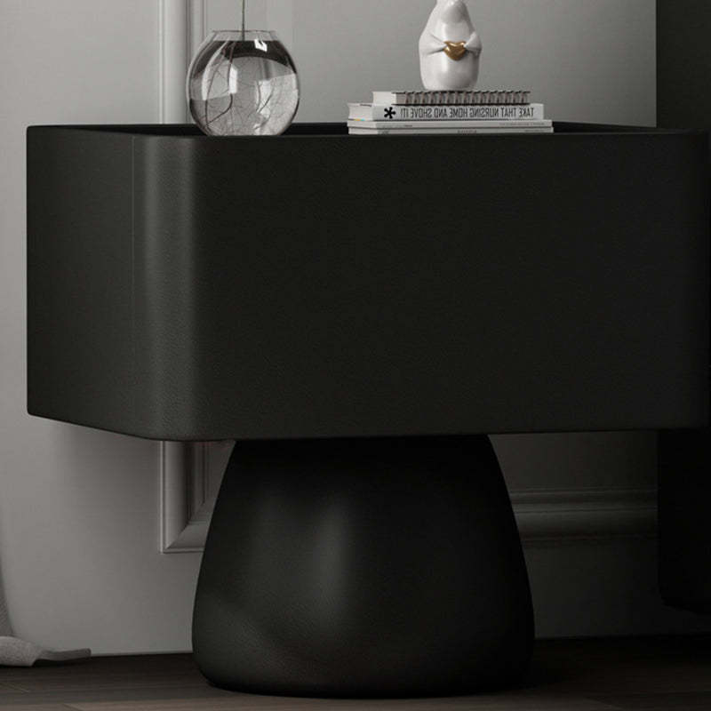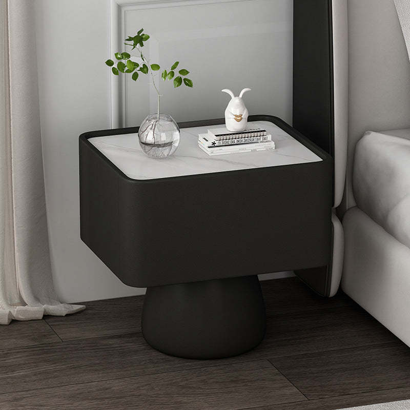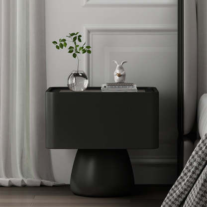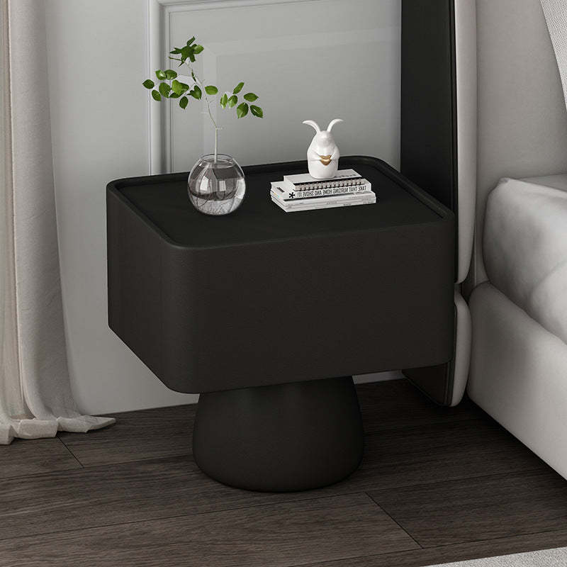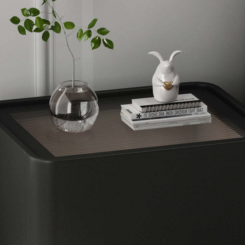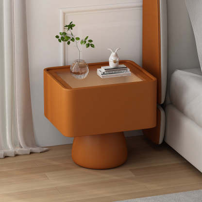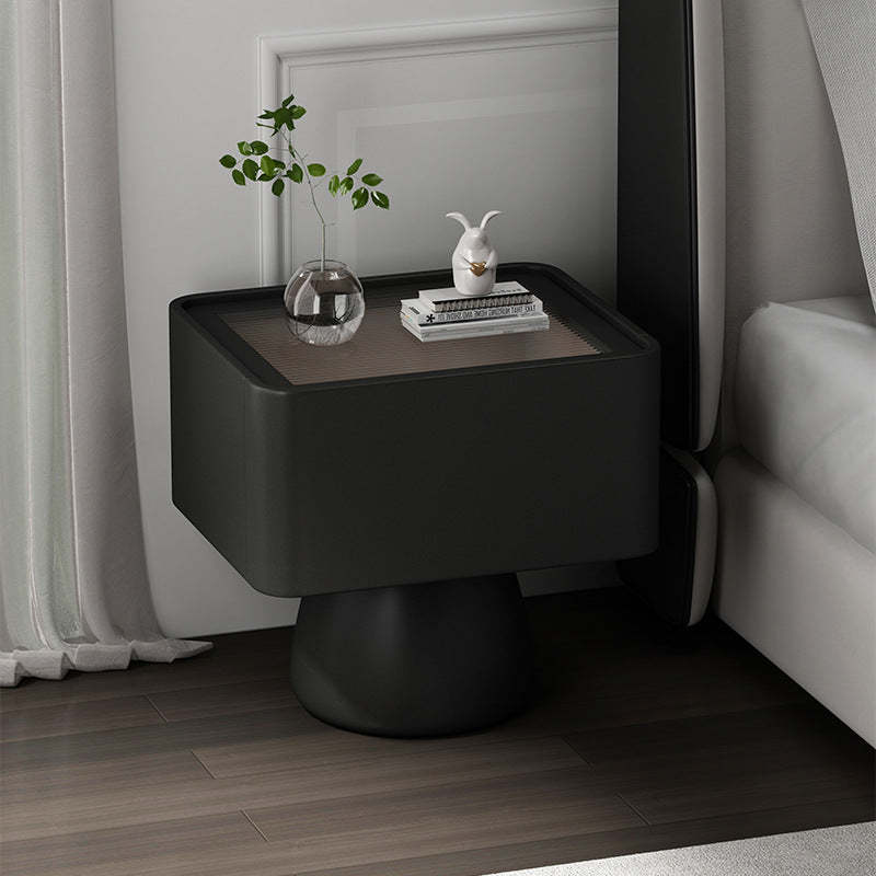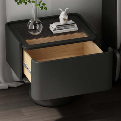 Modern Luxury Cone Base Glass Solid Wood Microfiber Leather Nightstand 1-Drawer For Bedroom