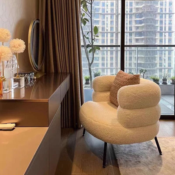 Modern Luxury Curved Lambswool Carbon Steel Legs Upholstered Accent Chair Backrest For Living Room