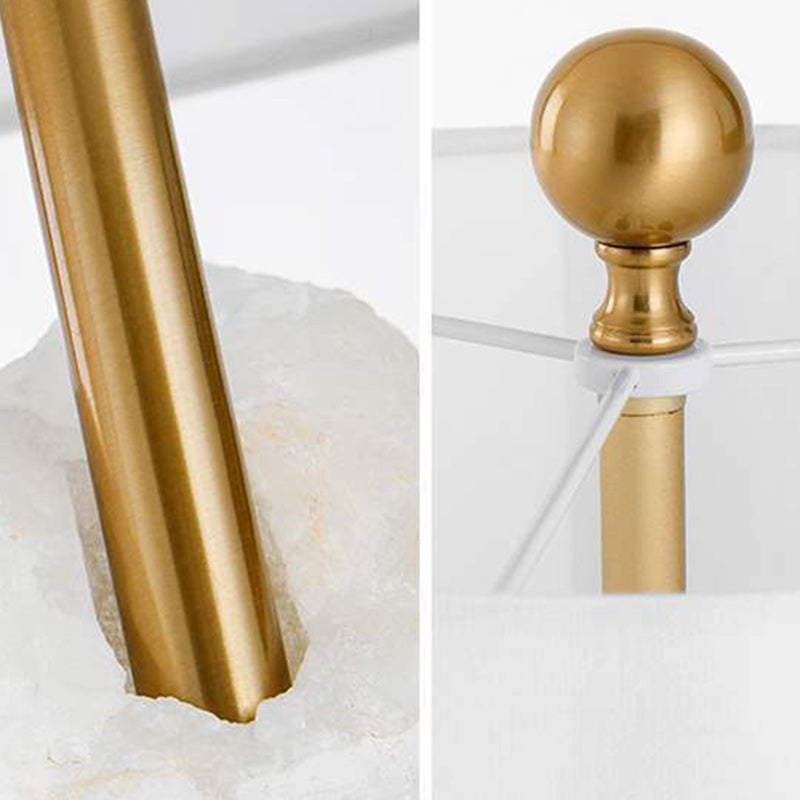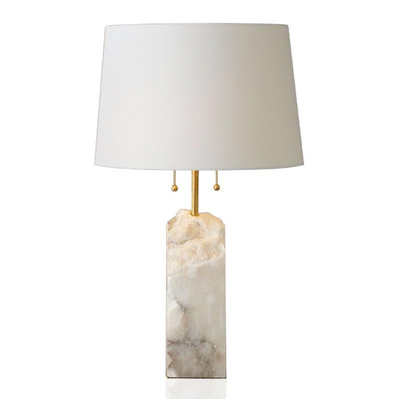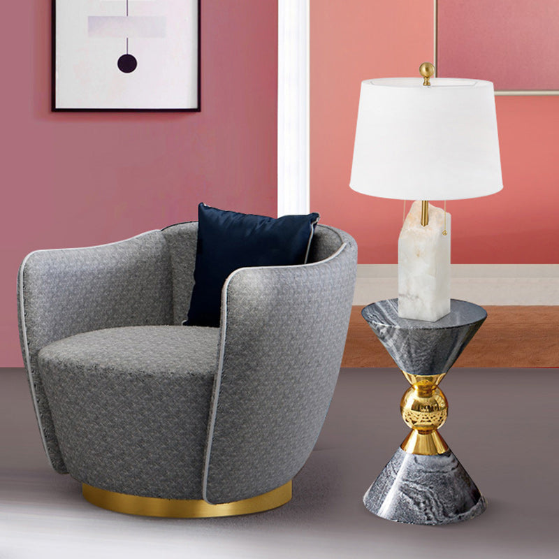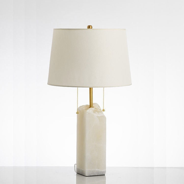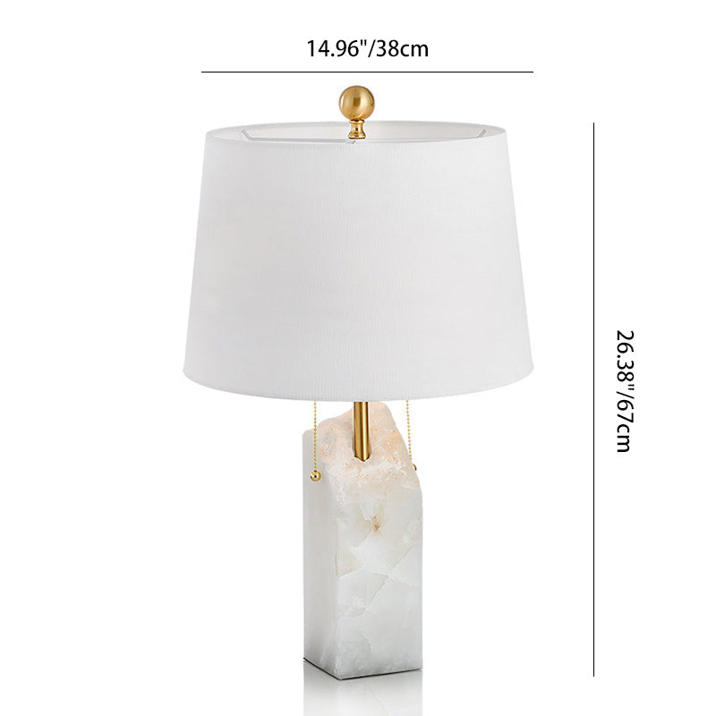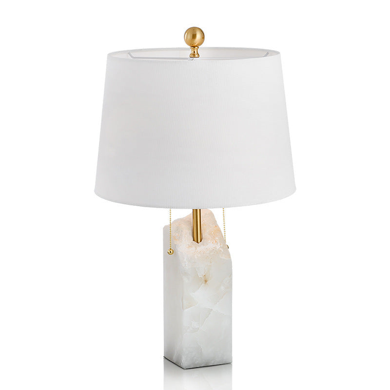 Modern Luxury Fabric Tapered Shade Raw White Alabaster Base 1-Light Table Lamp For Bedroom