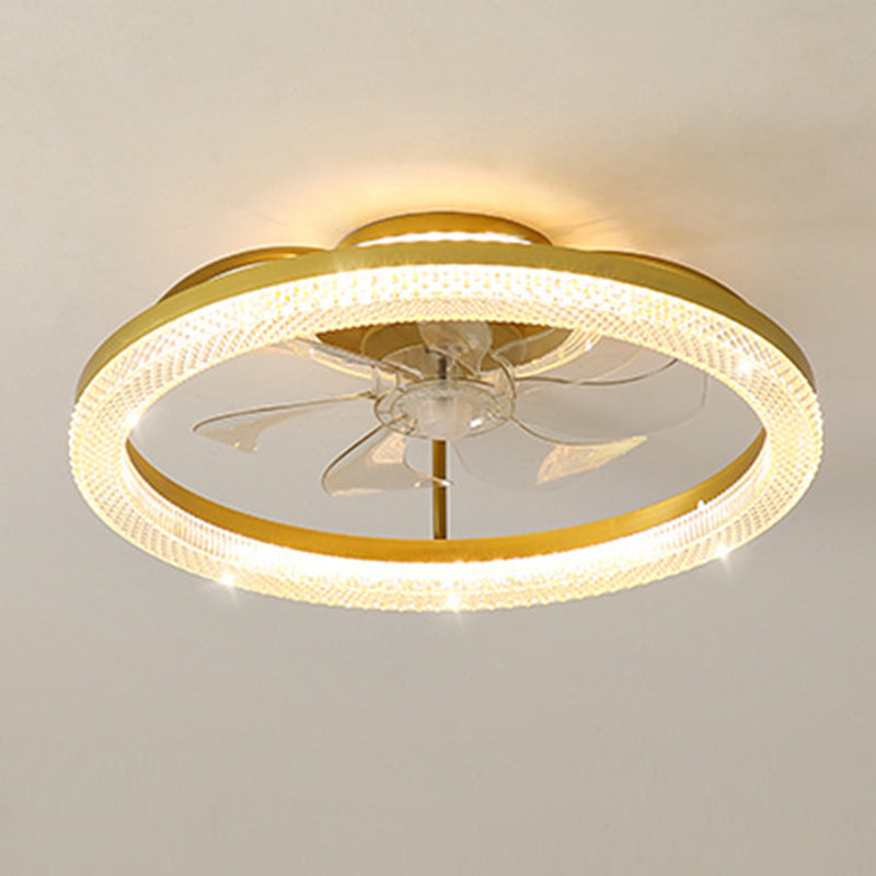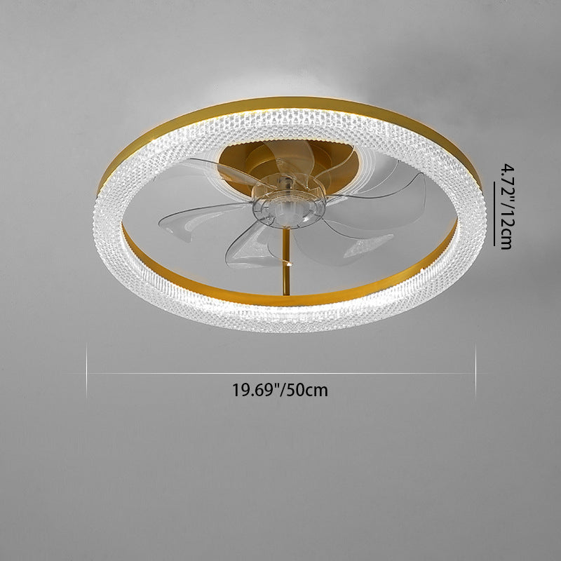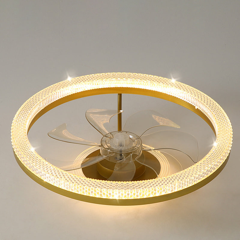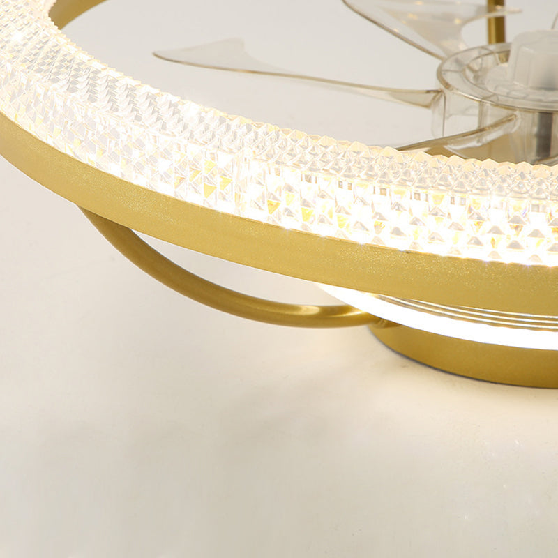 Modern Luxury Iron Crystal Stainless Steel ABS Round LED Semi-Flush Mount Ceiling Fan Light Living Room