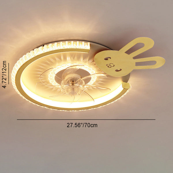 Modern Luxury Kids Round Crown Animal Acrylic ABS LED Flush Mount Ceiling Fan Light For Bedroom