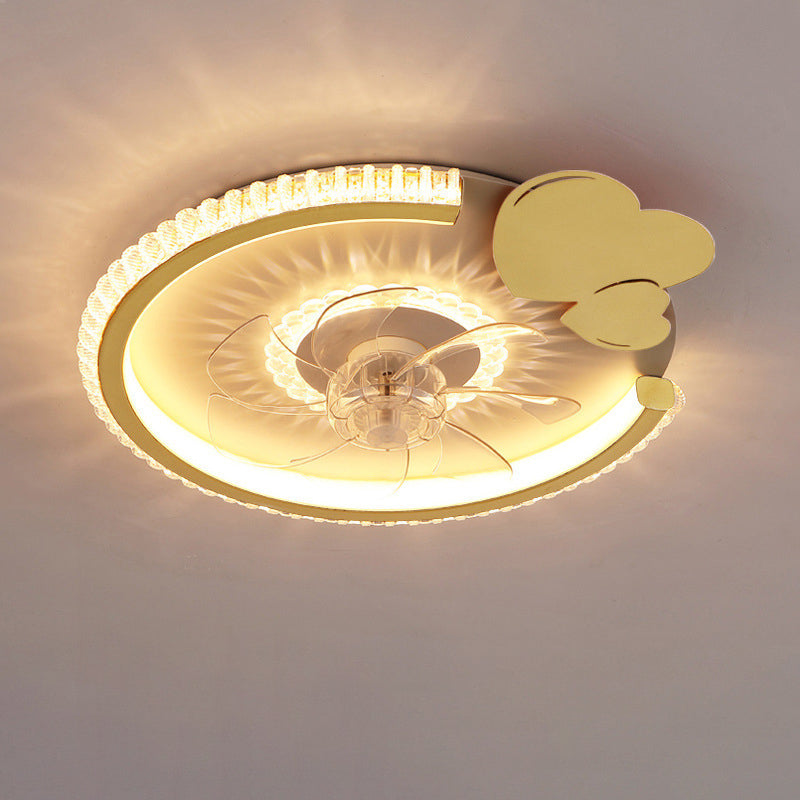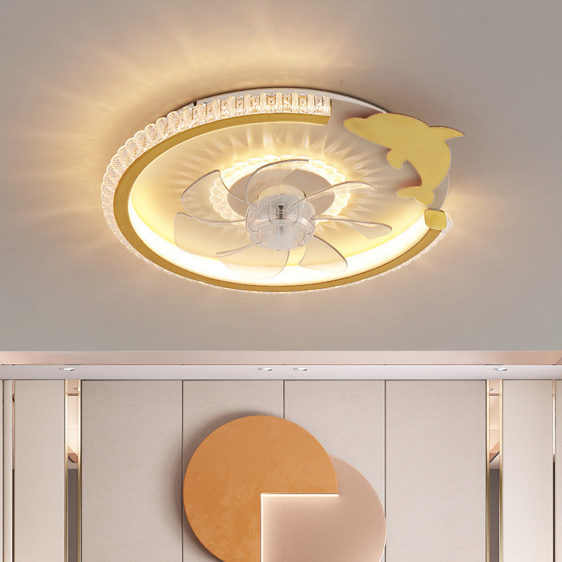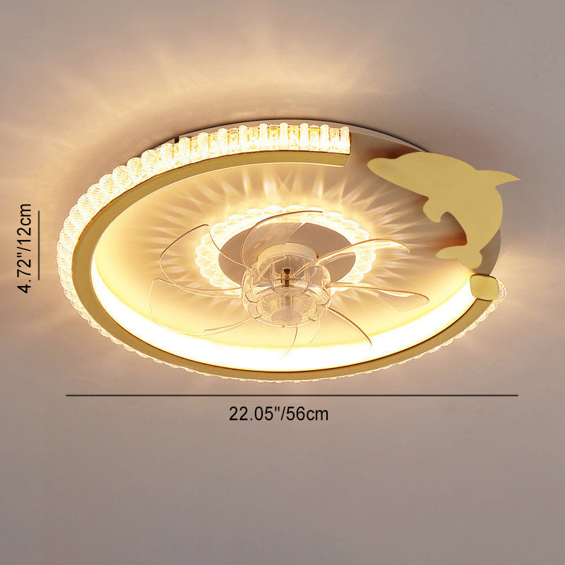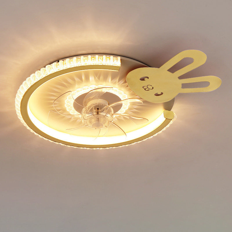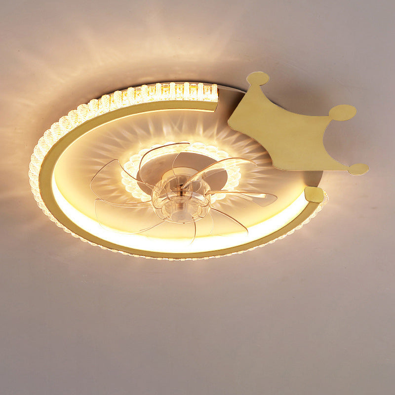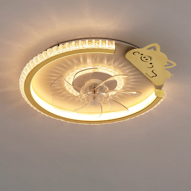 Modern Luxury Kids Round Crown Animal Acrylic ABS LED Flush Mount Ceiling Fan Light For Bedroom