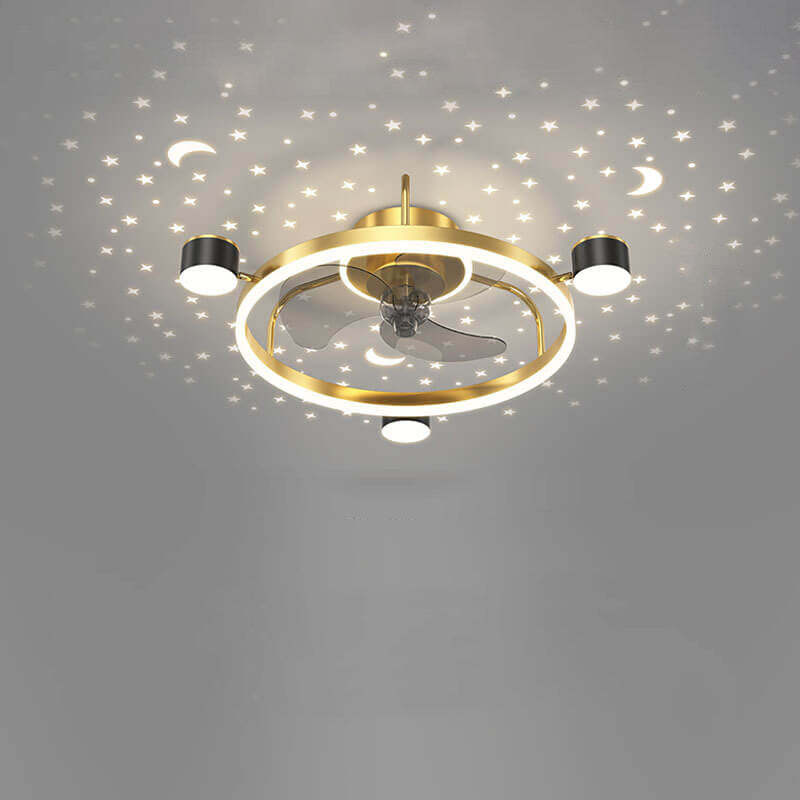 Modern Luxury Round Starry Sky Projection LED Flush Mount Ceiling Fan Light