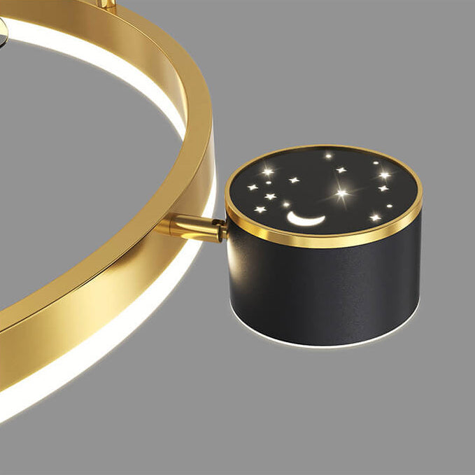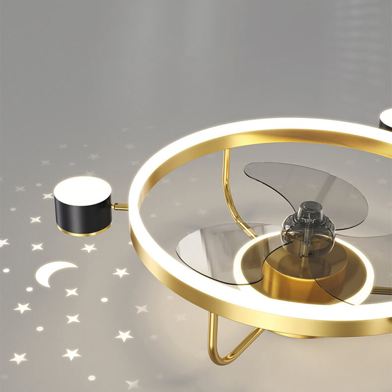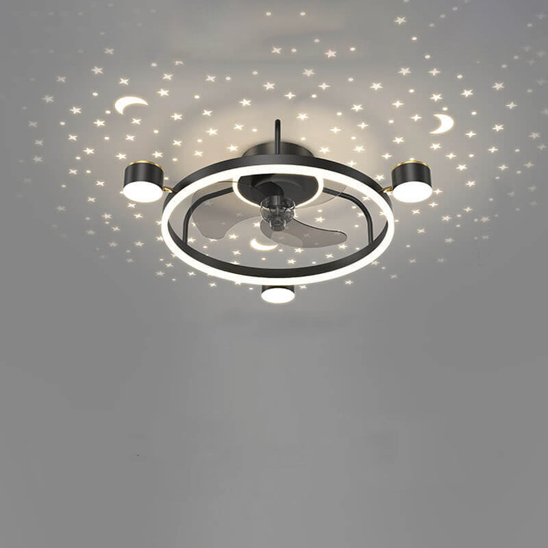 Modern Luxury Round Starry Sky Projection LED Flush Mount Ceiling Fan Light