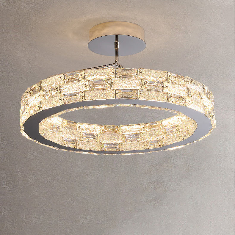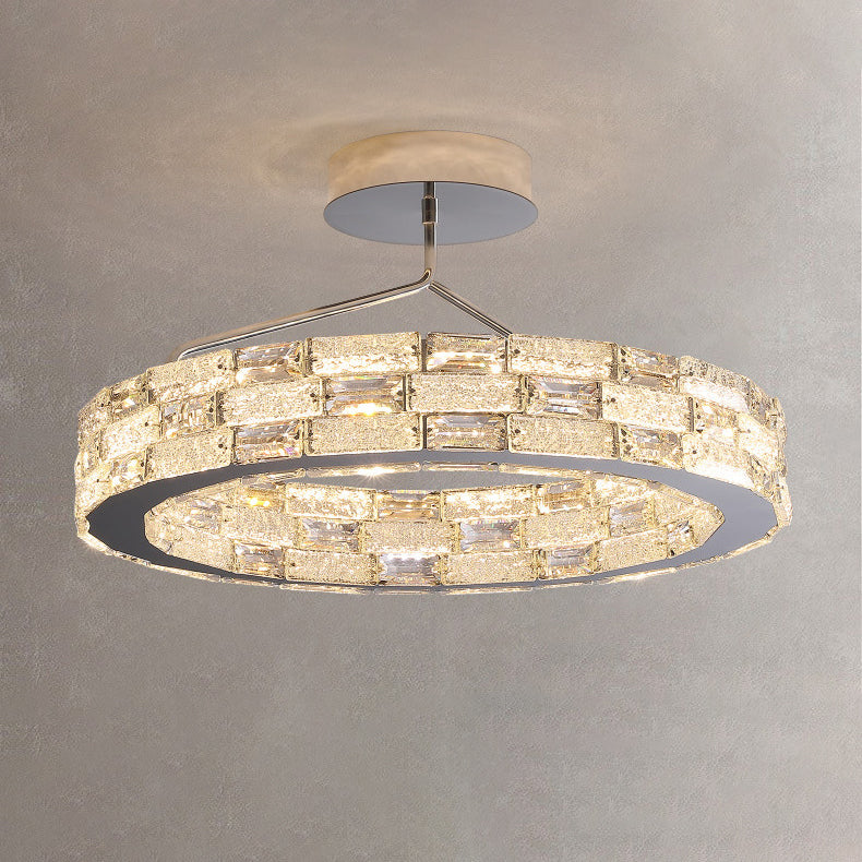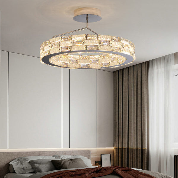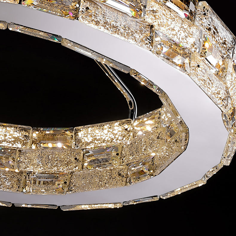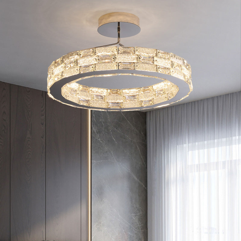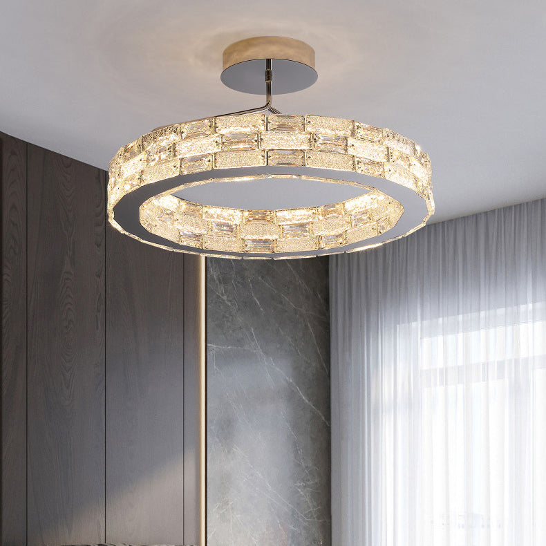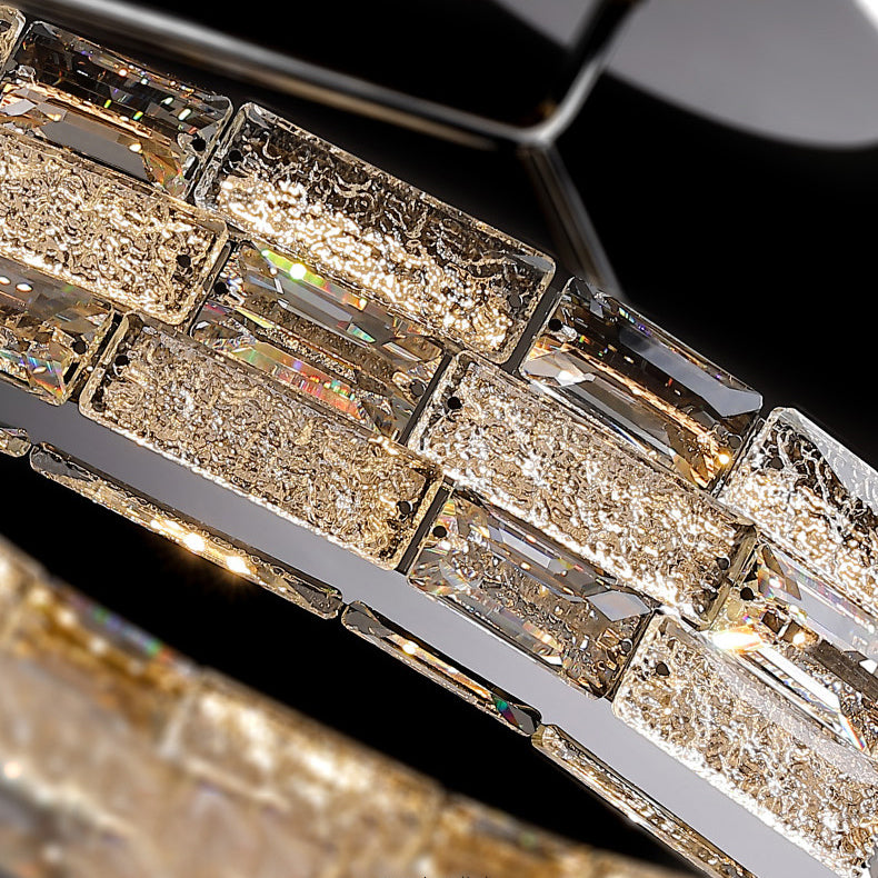 Modern Luxury Round Stitching Blocks Stainless Steel Crystal LED Chandelier For Bedroom