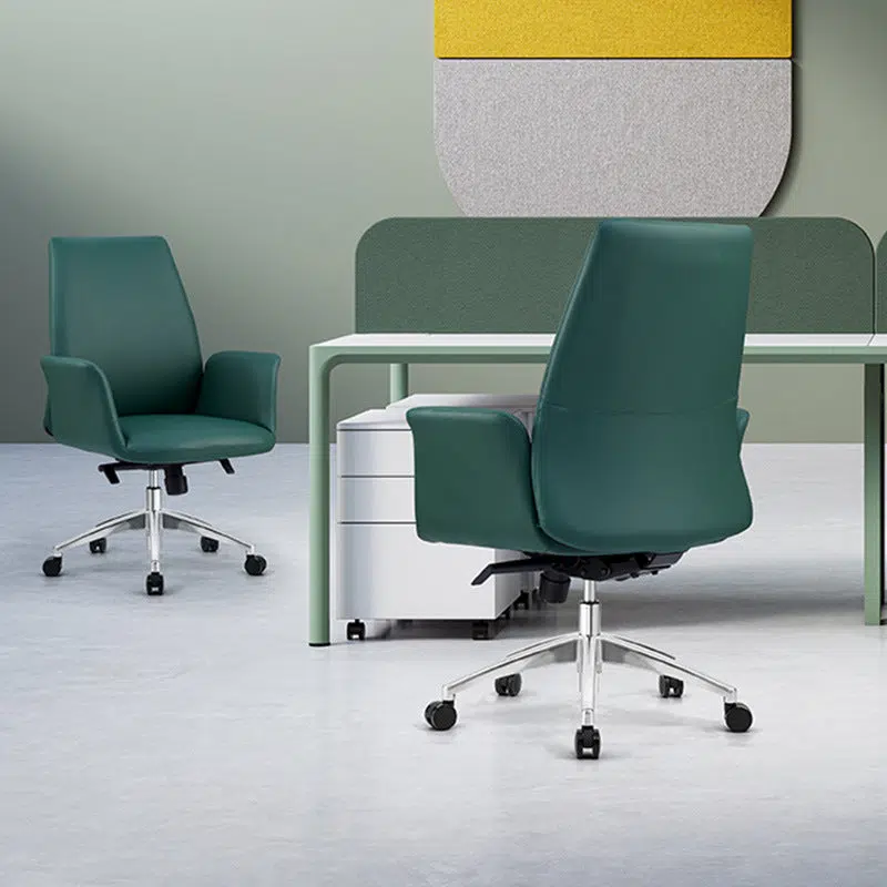 Modern Luxury Square Leather Swivel Desk Chair Backrest Casters For Home Office