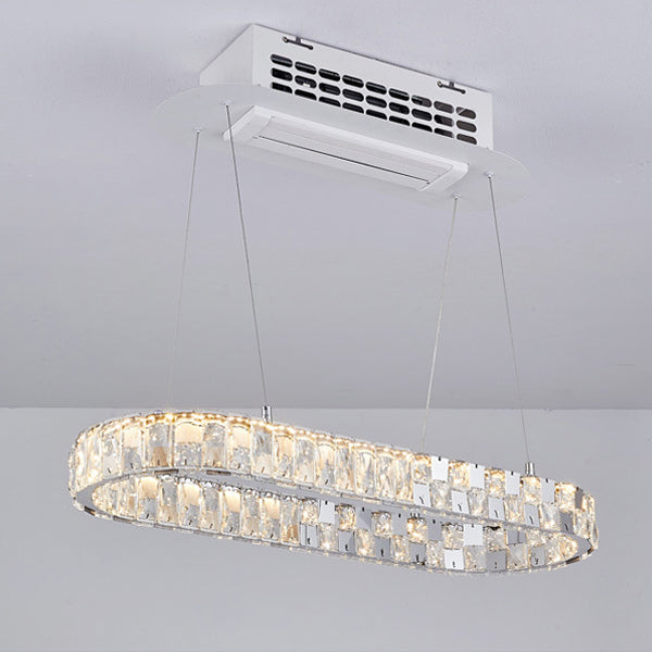 Modern Luxury Stainless Steel Acrylic Crystal Elliptical LED Chandeliers Ceiling Fan Light For Dining Room