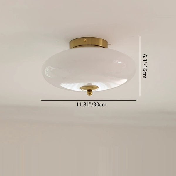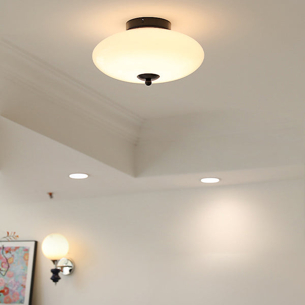 Modern Mid-Century Bauhaus Round Iron Glass LED Semi-Flush Mount Ceiling Light For Bedroom
