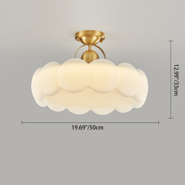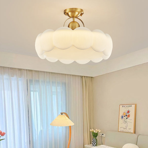 Modern Mid-Century Copper Stainless Steel Acrylic Creamy Round Floral LED Semi-Flush Mount Light For Living Room