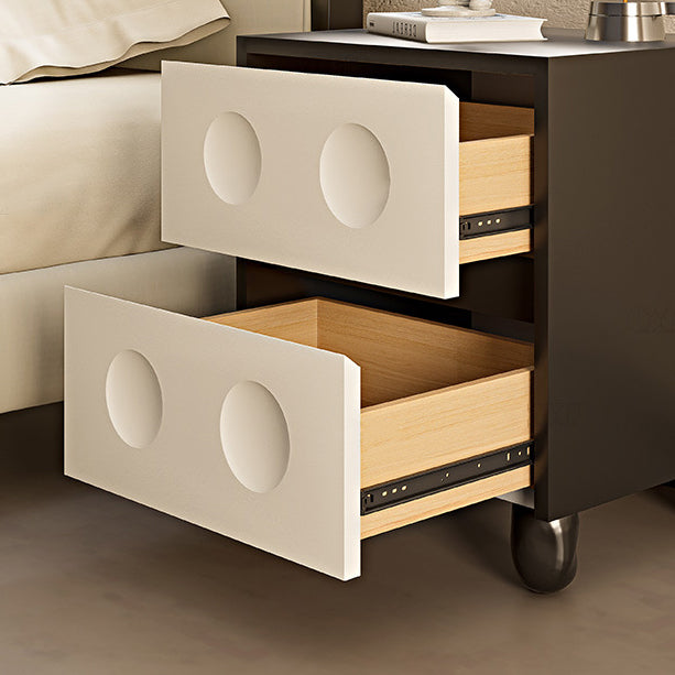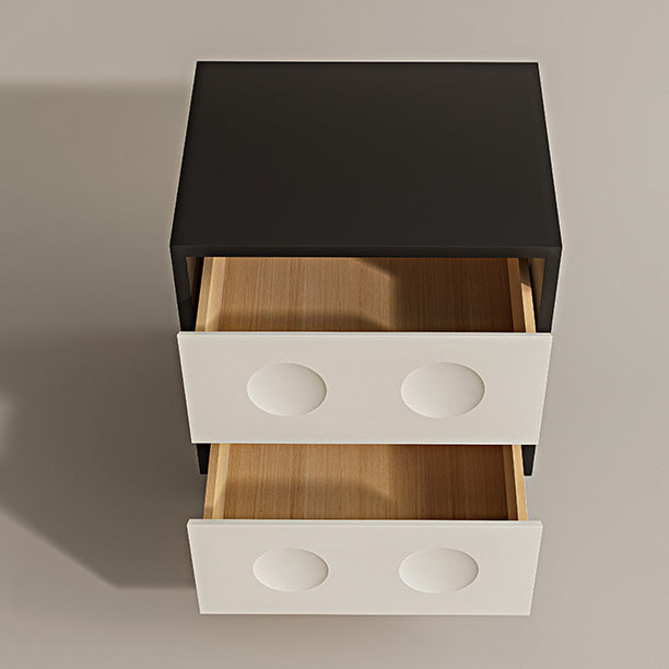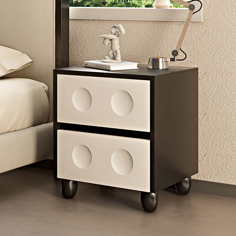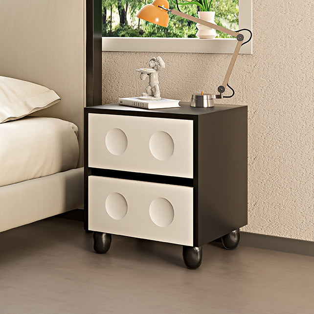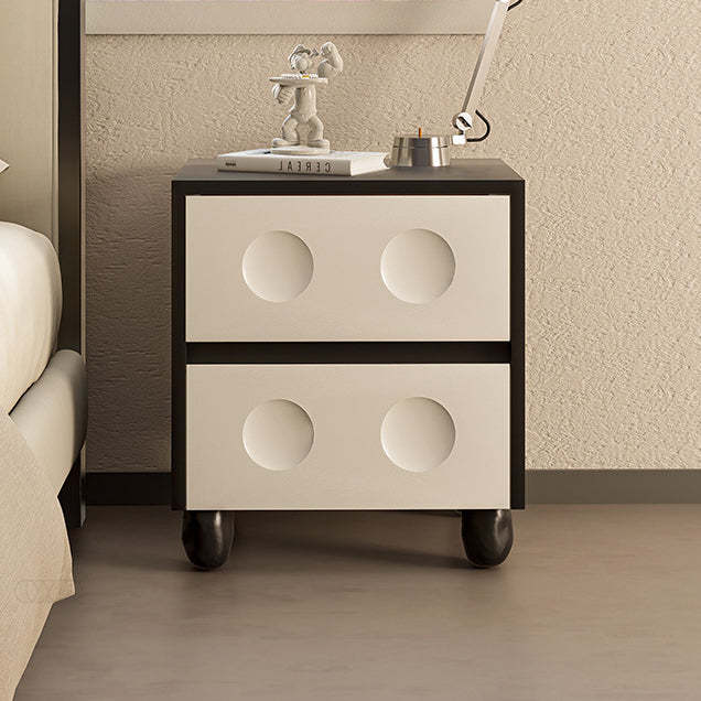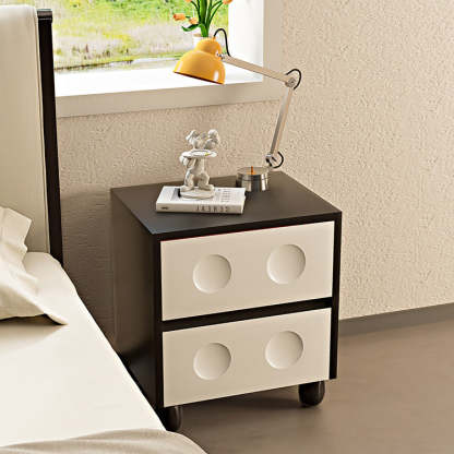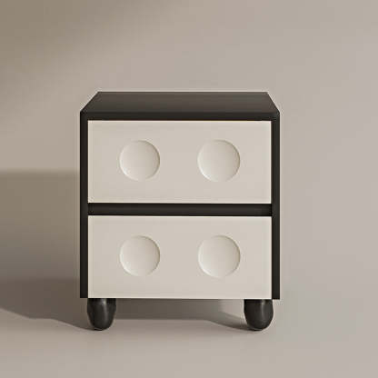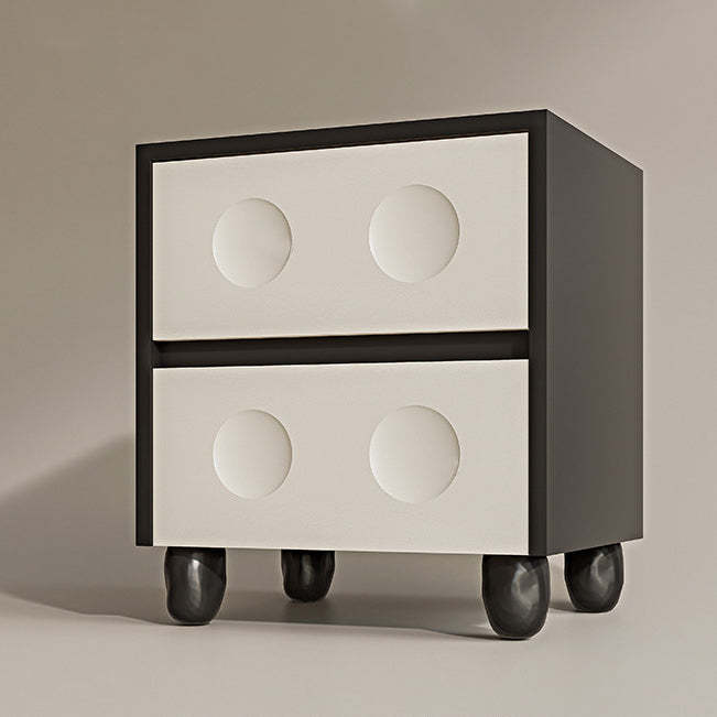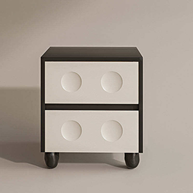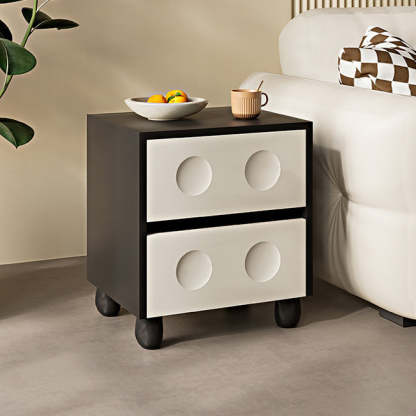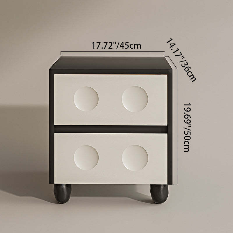 Modern Mid-Century Cube Solid Wood RPF Pebble-Foot Nightstand 2-Drawer For Bedroom
