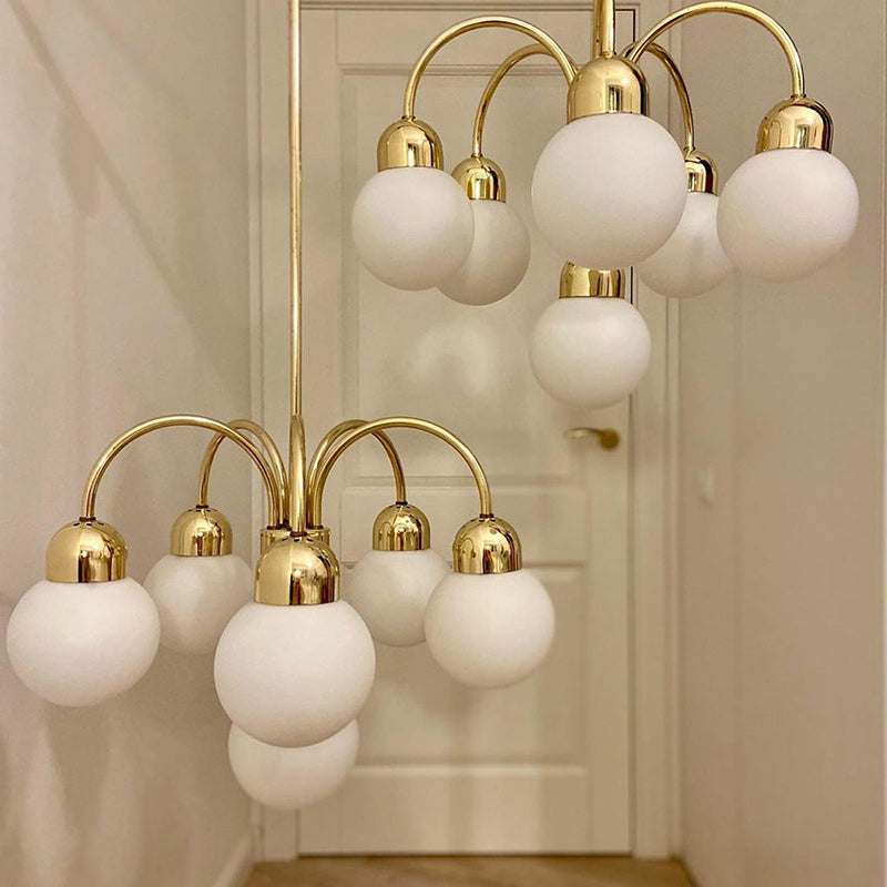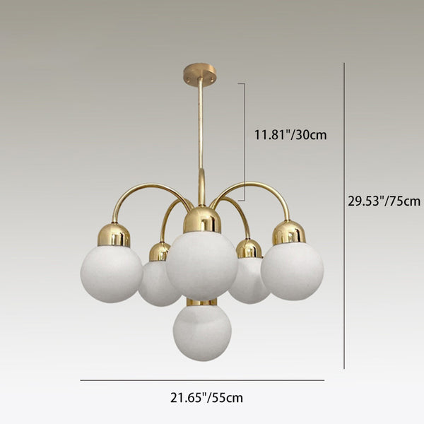 Modern Mid-Century Iron Arc Rod Glass Ball Shade 6-Light Chandelier For Living Room