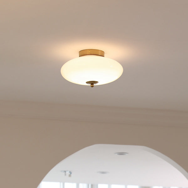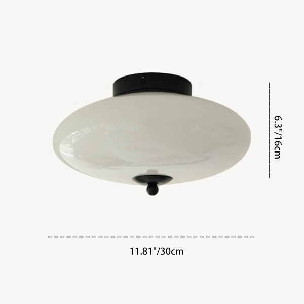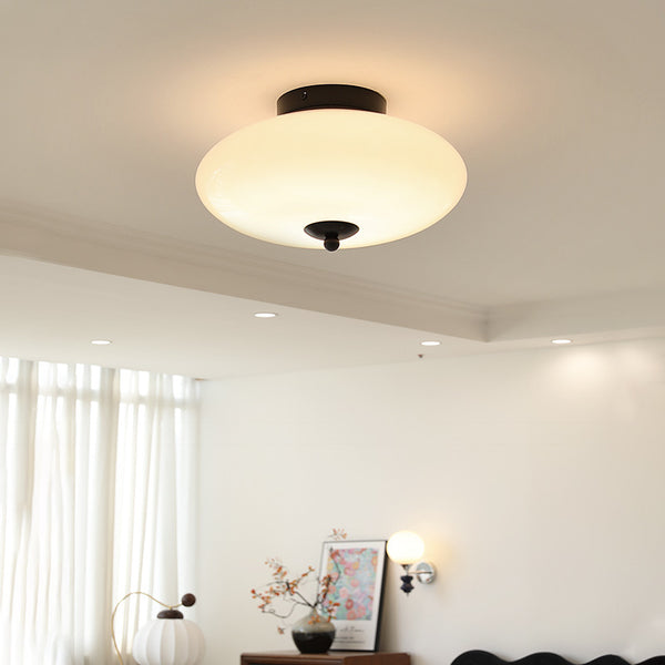 This semi-flush mount ceiling light features an elegant oval glass shade paired with durable iron in gold. chrome. or black finishes. A perfect blend of Bauhaus-inspired design and mid-century charm. ideal for bedrooms. hallways. or living rooms.