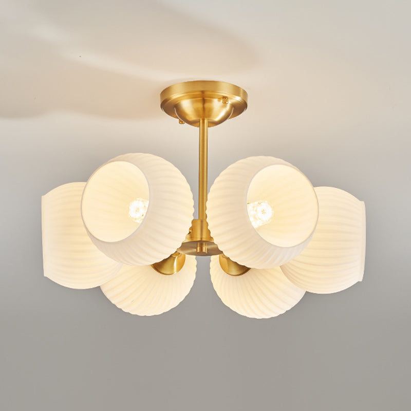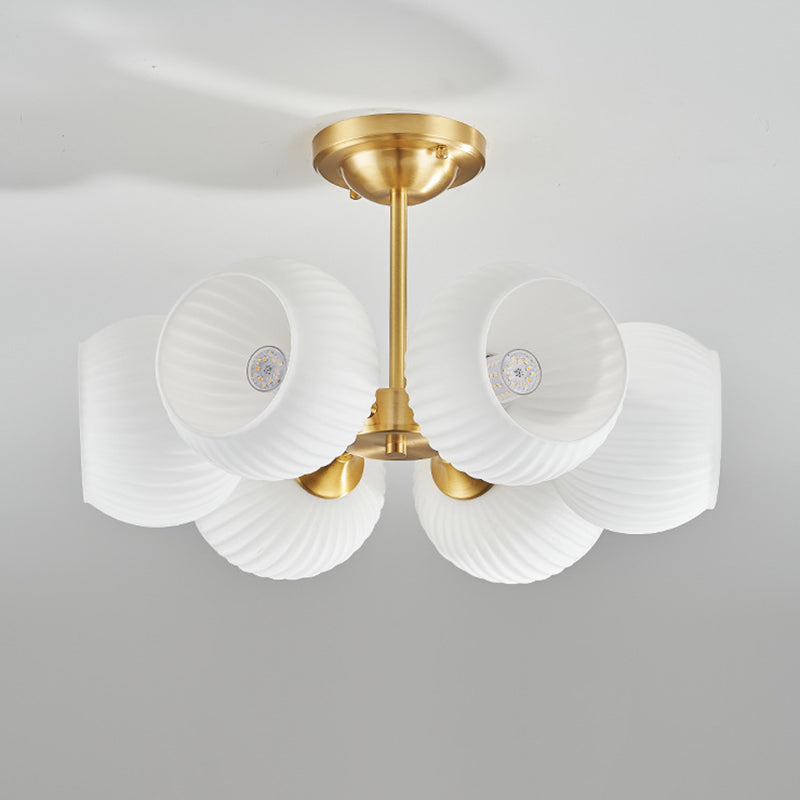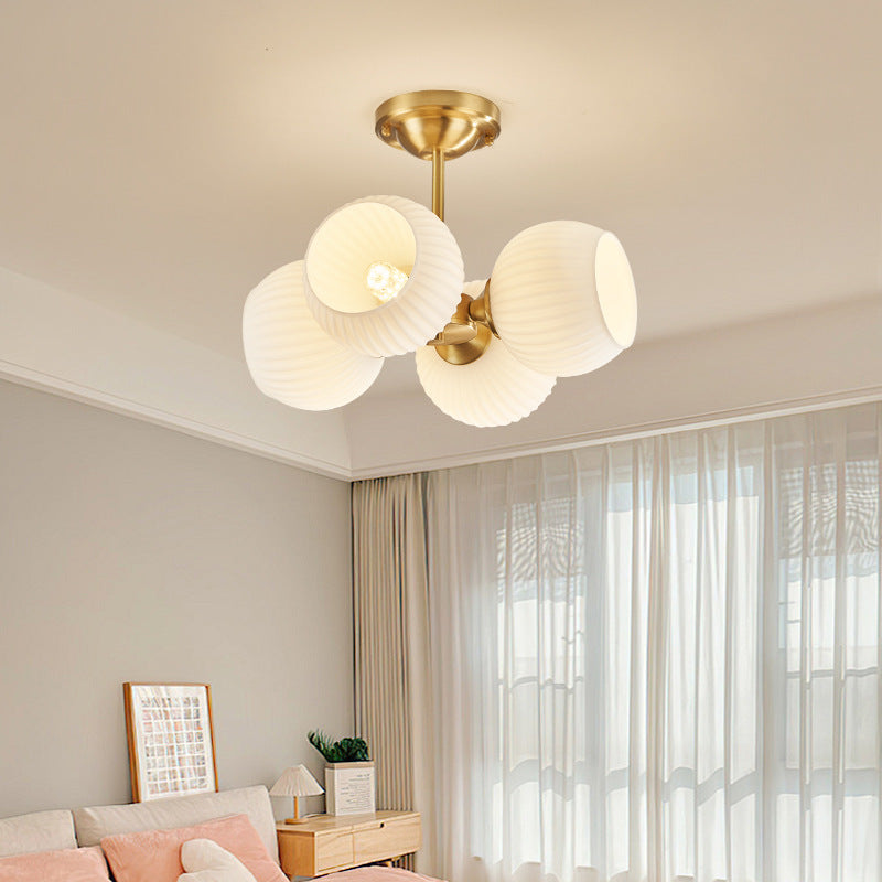 Modern Minimalist All-Copper Glass Striped Globe Shade 4/6-Light Semi-Flush Mount Light For Living Room