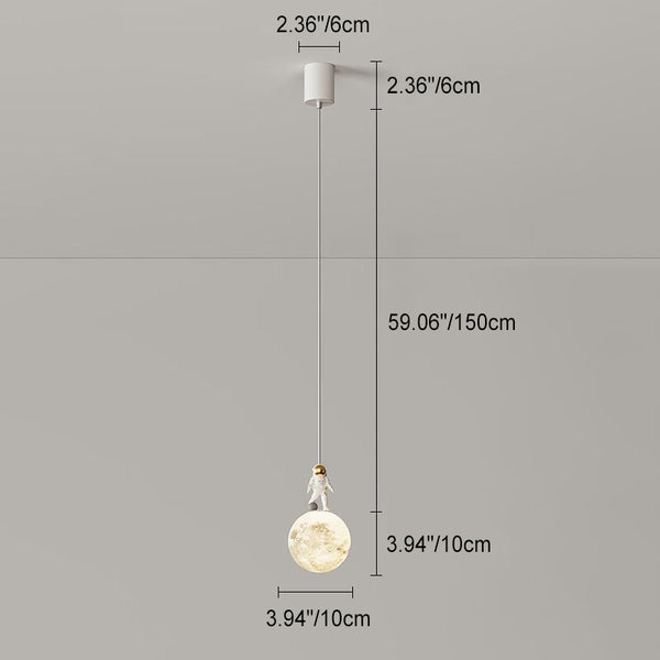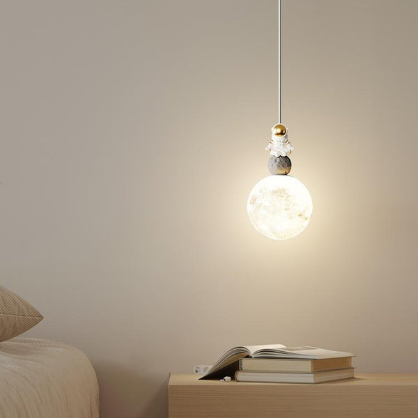 Modern Minimalist Astronaut Moon Iron Resin LED Pendant Light For Bedroom