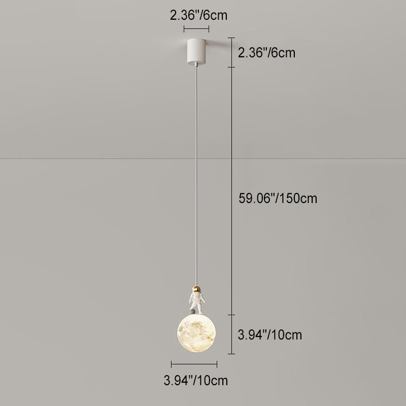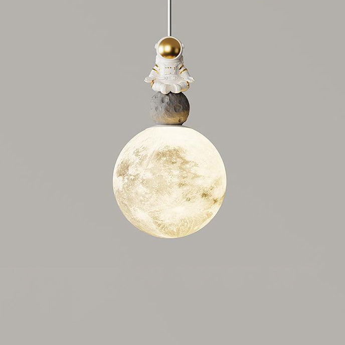 Modern Minimalist Astronaut Moon Iron Resin LED Pendant Light For Bedroom