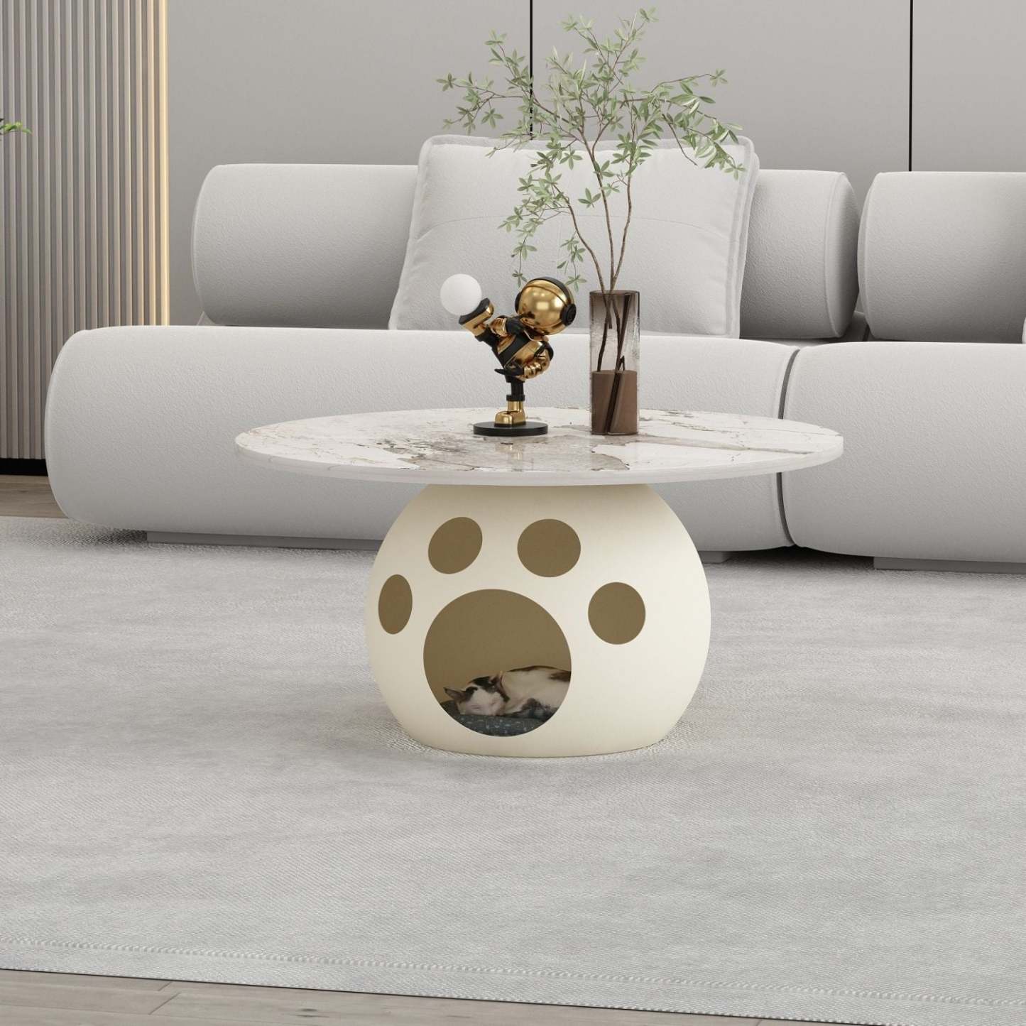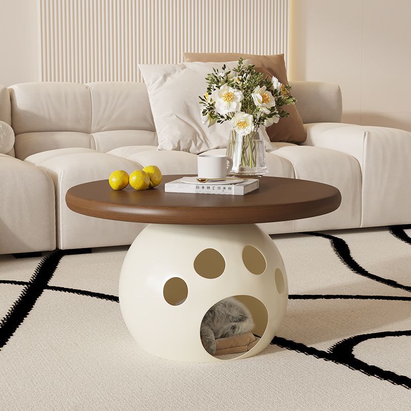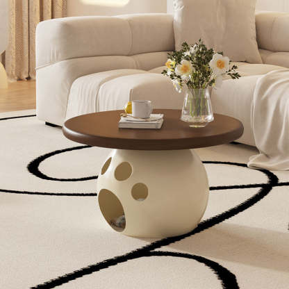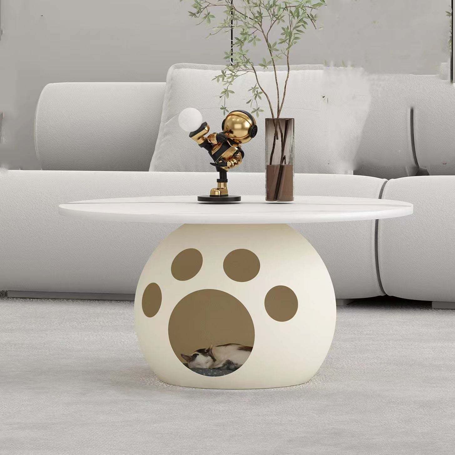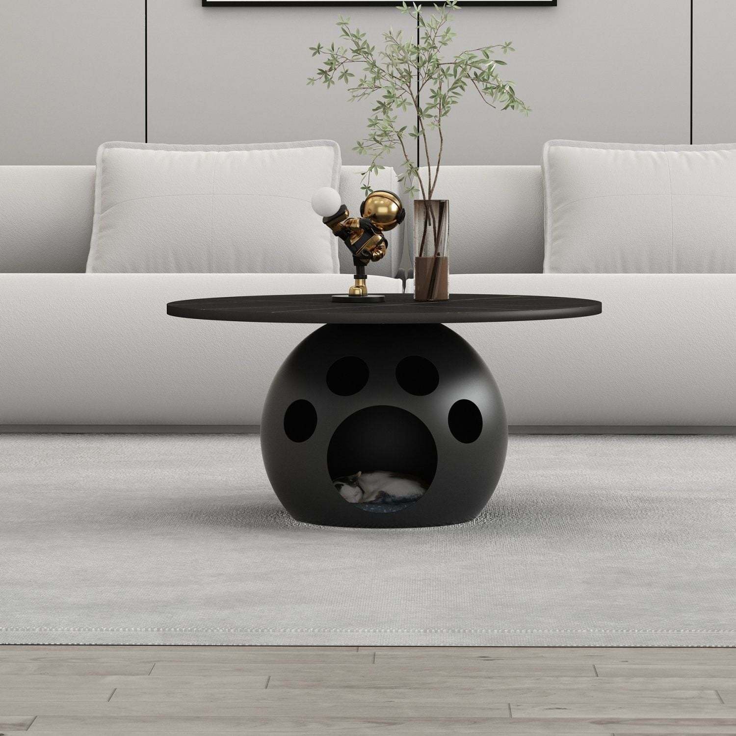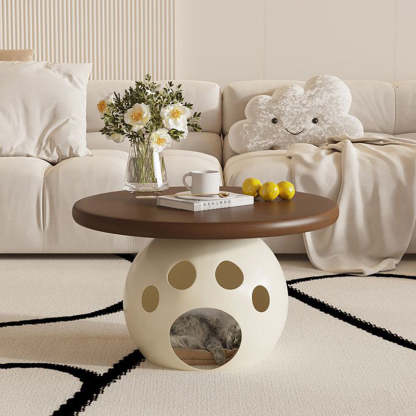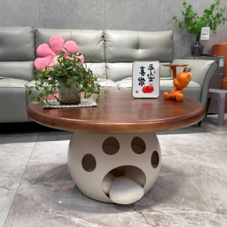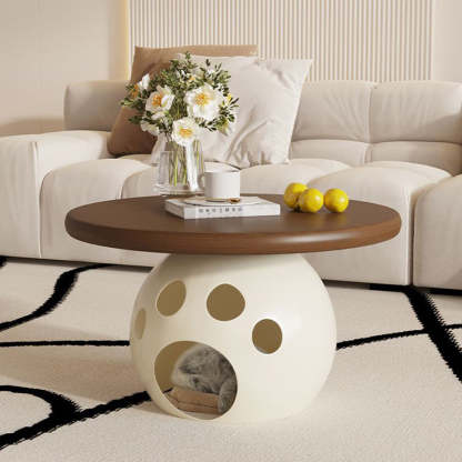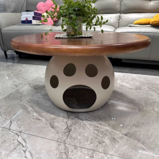 This modern round coffee table combines wood. carbon steel. and a premium rock slab top in a minimalist design��perfect for living rooms or bedrooms. Available in walnut. snow white. pure white. and black. it also doubles as a creative pet-friendly piece. ideal for small spaces and stylish interiors.