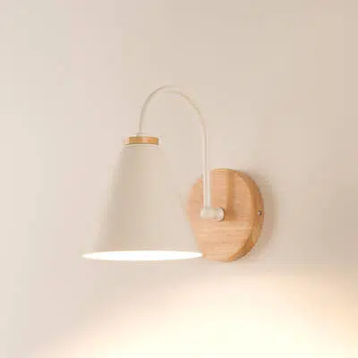Modern Minimalist Cone Shade Wooden Base 1-Light Wall Sconce Lamp