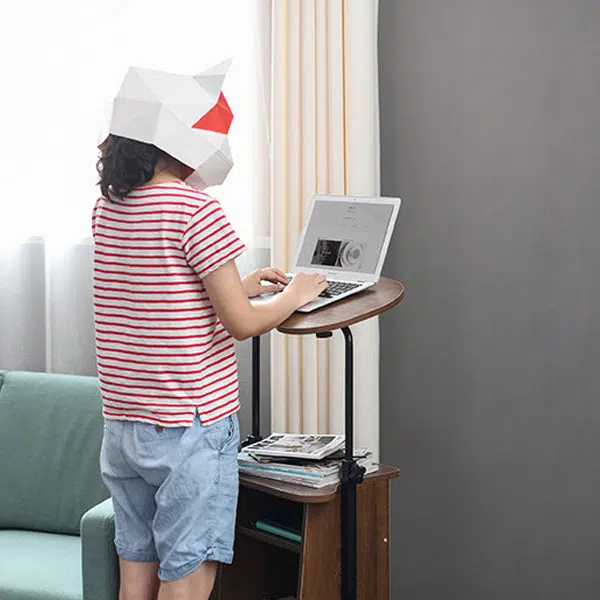 Modern Minimalist Curved Solid Wood Height Adjustable Computer Desk Mobile Standing Desk 2-Tier Storage Shelves For Home Office