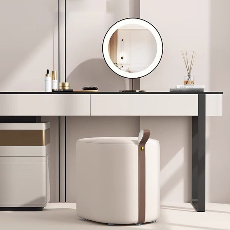Modern Minimalist Cylinder Oval Microfiber Leather Solid Wood Vanity Stool Backless Armless For Bedroom
