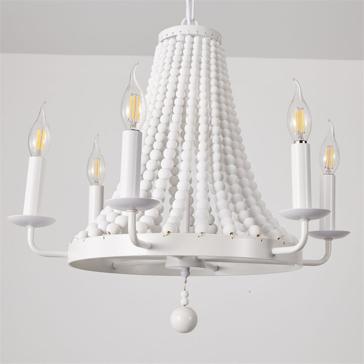 Modern Minimalist Dome Trapezoid Wooden Beads Iron 6 – Light Chandelier For Living Room