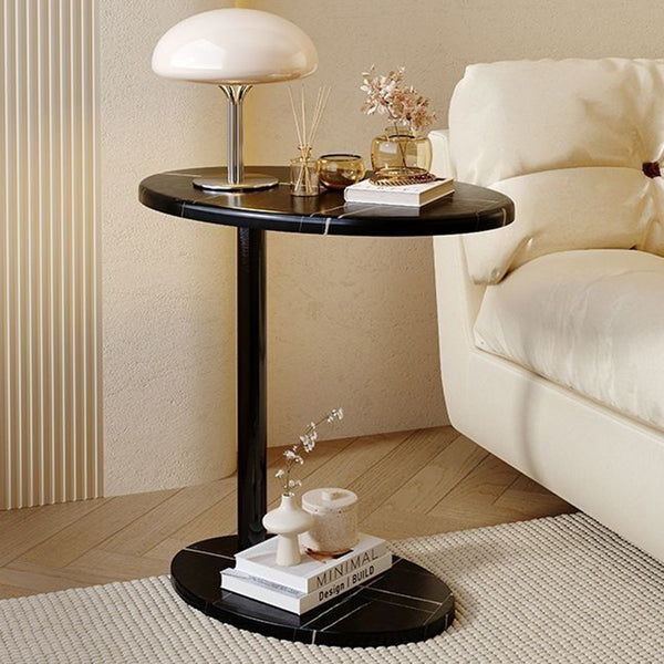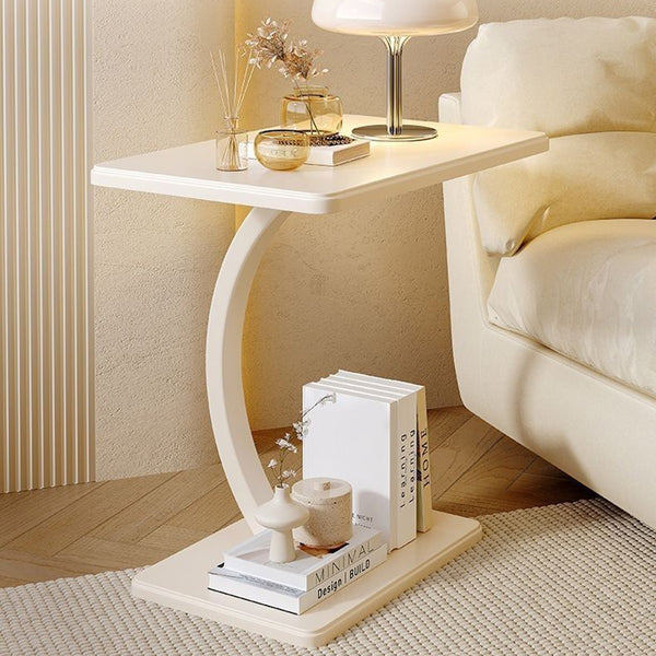 Modern Minimalist Elliptical Rectangular C-Shape MDF Steel Iron End Table 2-Tier For Living Room