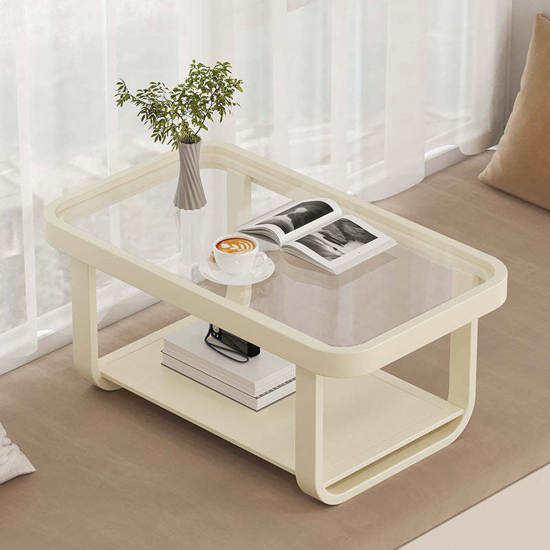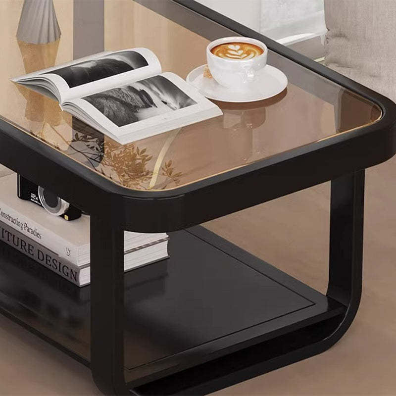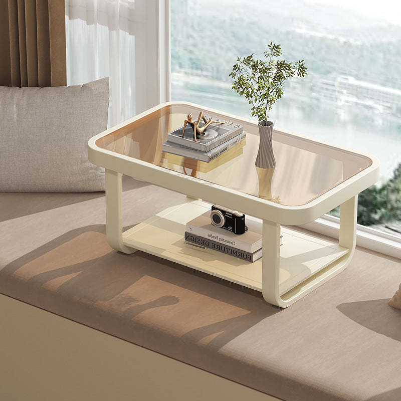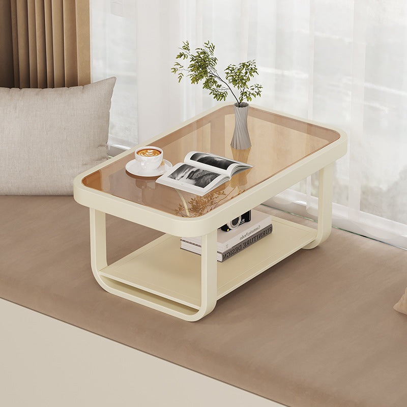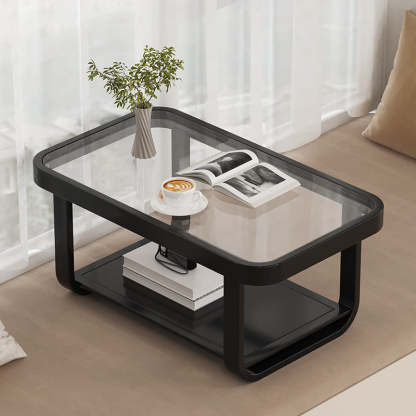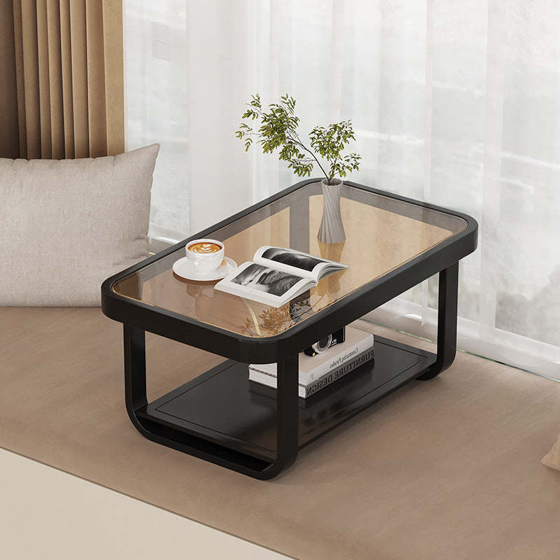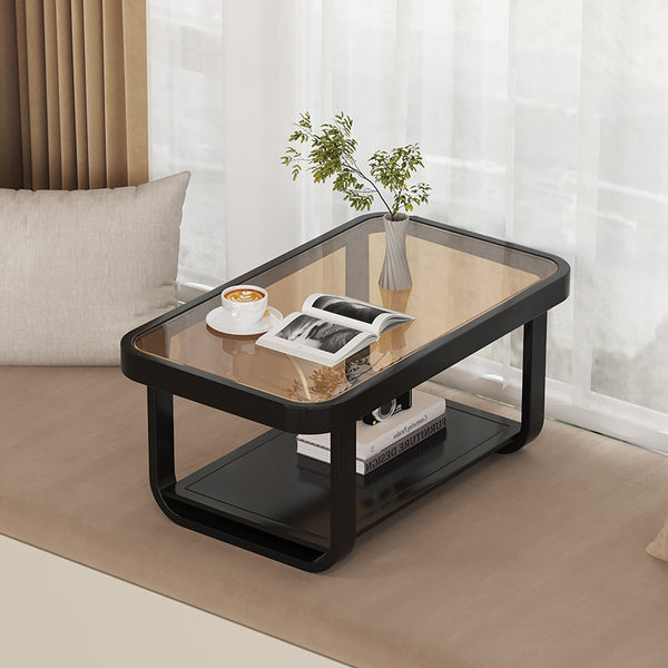 Modern Minimalist Glass Metal Rectangular Low Coffee Table With 2-Tier Design For Living Room