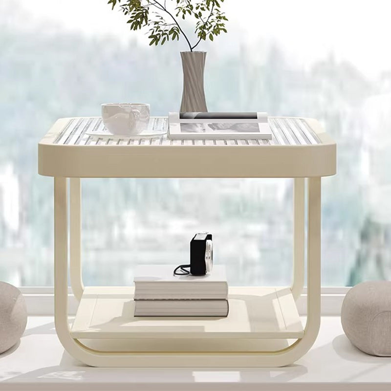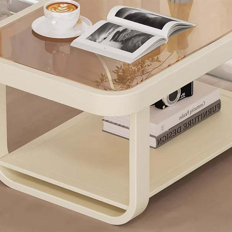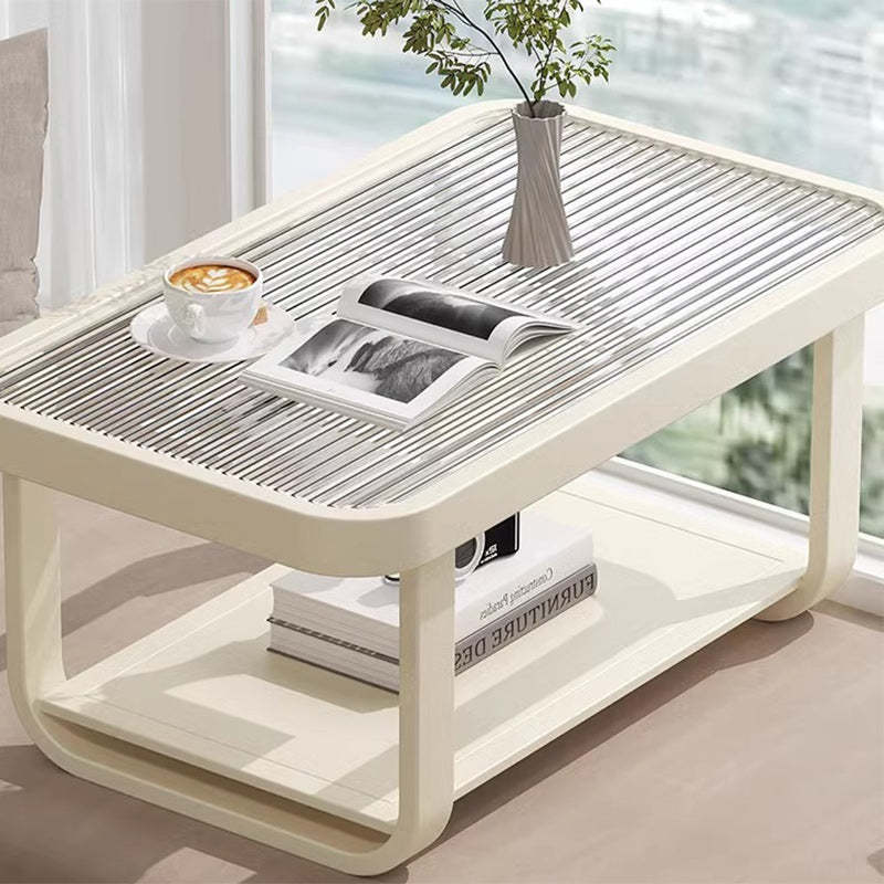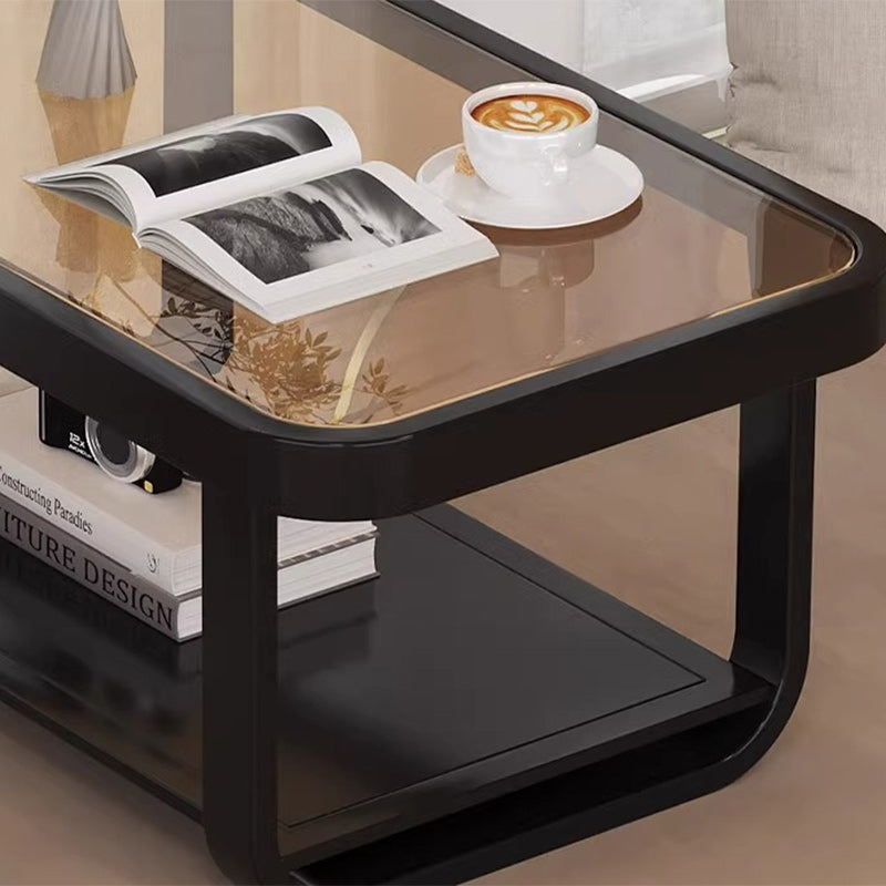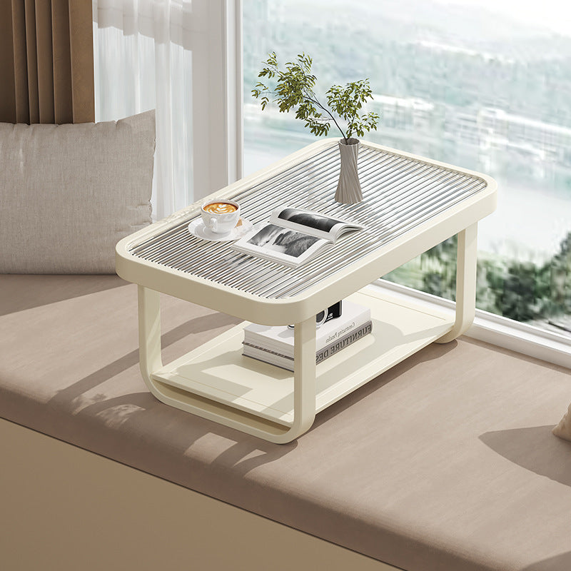 Modern Minimalist Glass Metal Rectangular Low Coffee Table With 2-Tier Design For Living Room