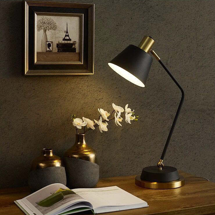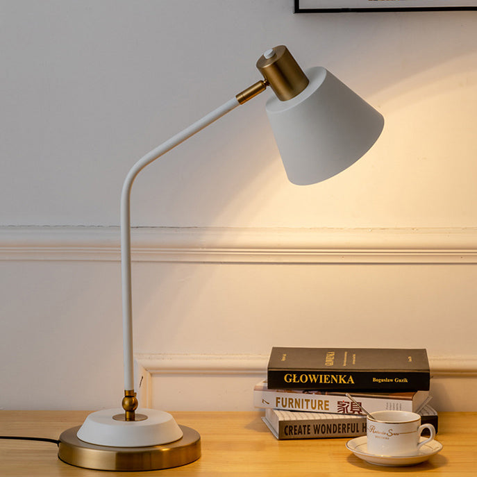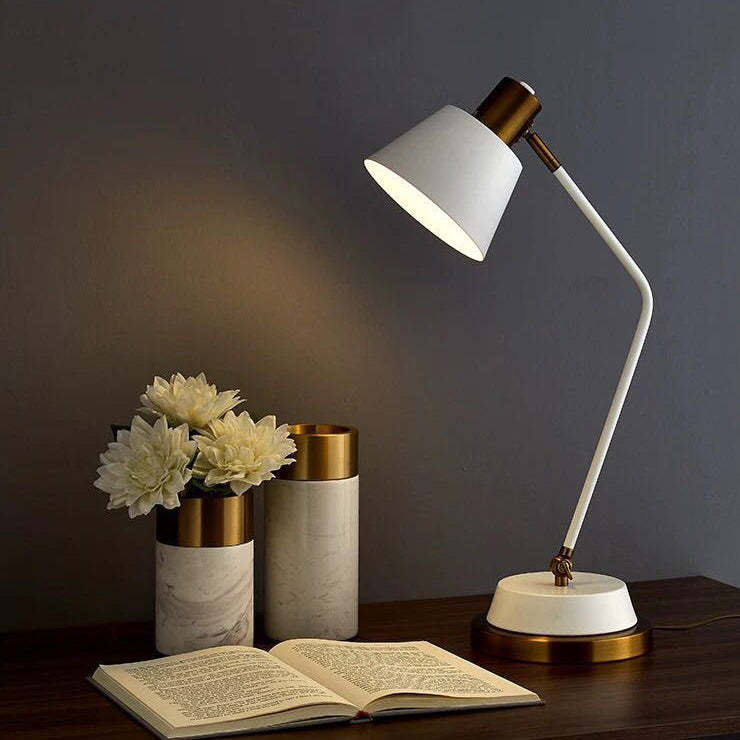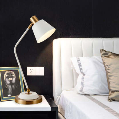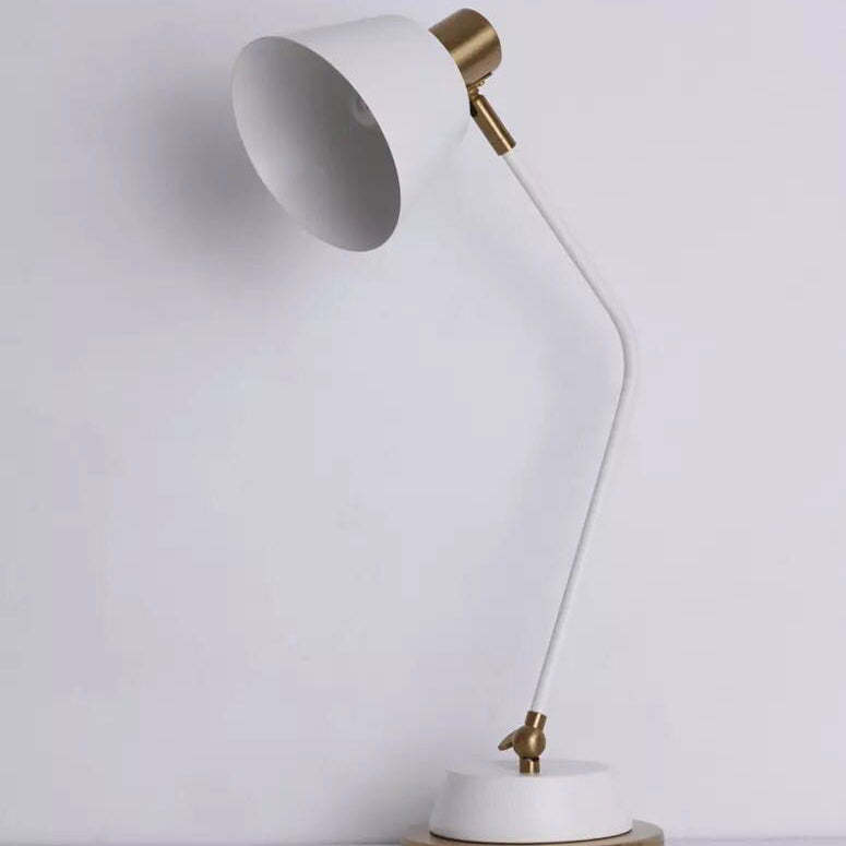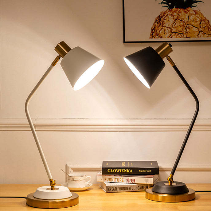 This modern minimalist iron table lamp features a sleek cylinder shade with an adjustable head. perfect for focused reading or ambient lighting. Available in black or white. it's corrosion-resistant and ideal for stylish. long-lasting use in any living room or workspace.