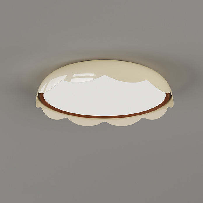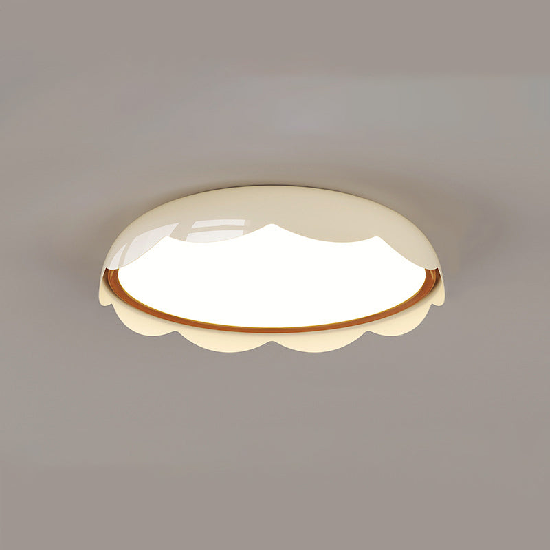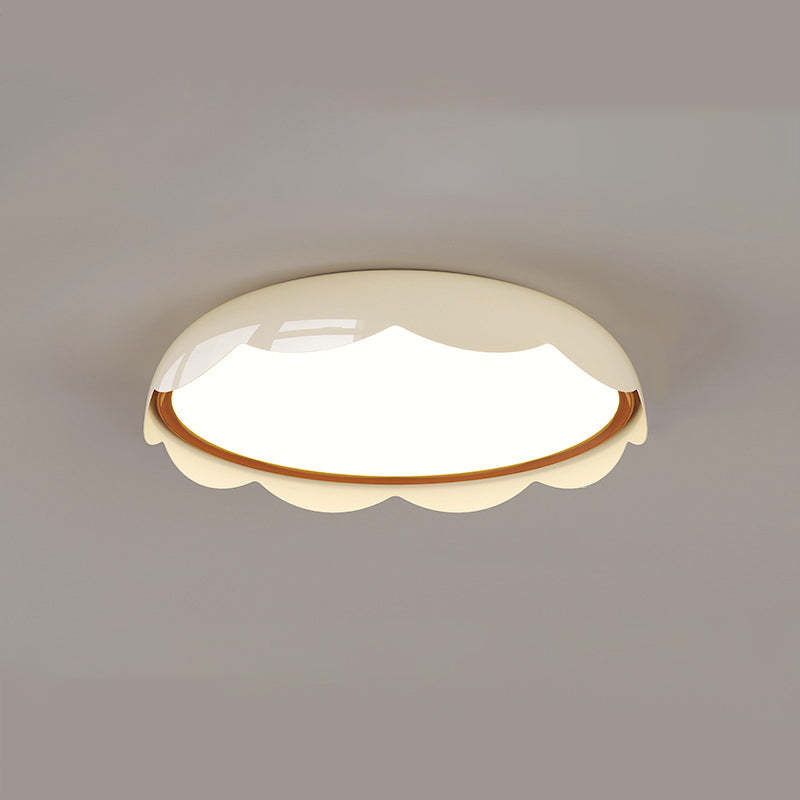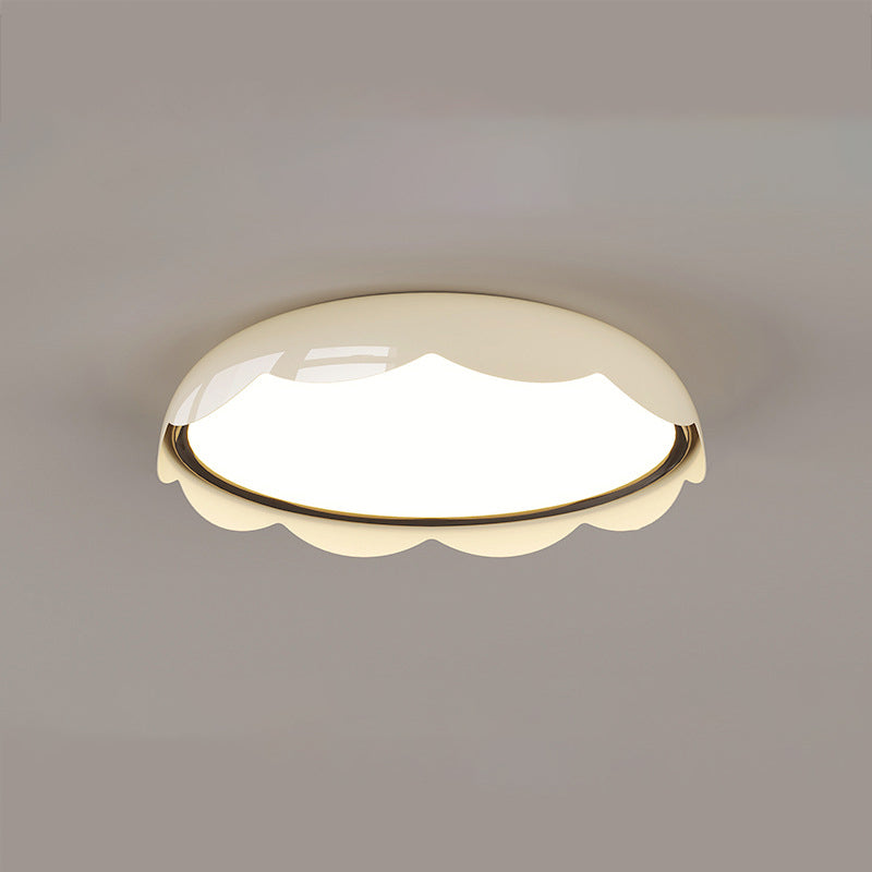 Featuring a soft ivory-white tone and wave-textured round design. this modern flush mount ceiling light offers full-spectrum LED lighting with stepless dimming. flicker-free. and eye protection��perfect for children's rooms and stylish bedrooms. Crafted from iron and PE for a clean. contemporary look.